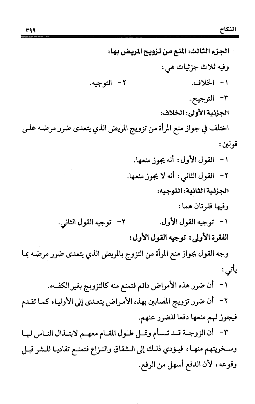 الجزء الثالث: المنع من تزويج المريض بها: