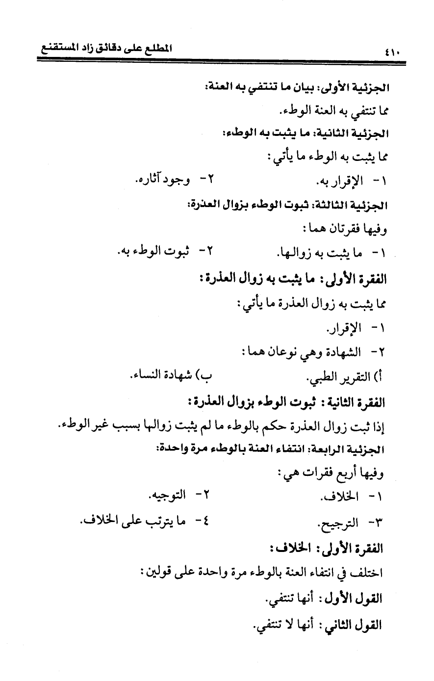 الجزئية الأولى: بيان ما تنتفي به العنة:
