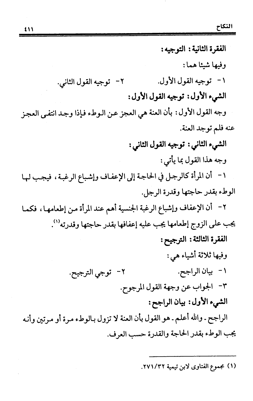2 - أن الإعفاف وإشباع الرغبة الجنسية أهم عند المرأة من إطعامها، فكما يجب على الزوج إطعامها يجب عليه إعفافها بقدر حاجتها وقدرته (¬1).