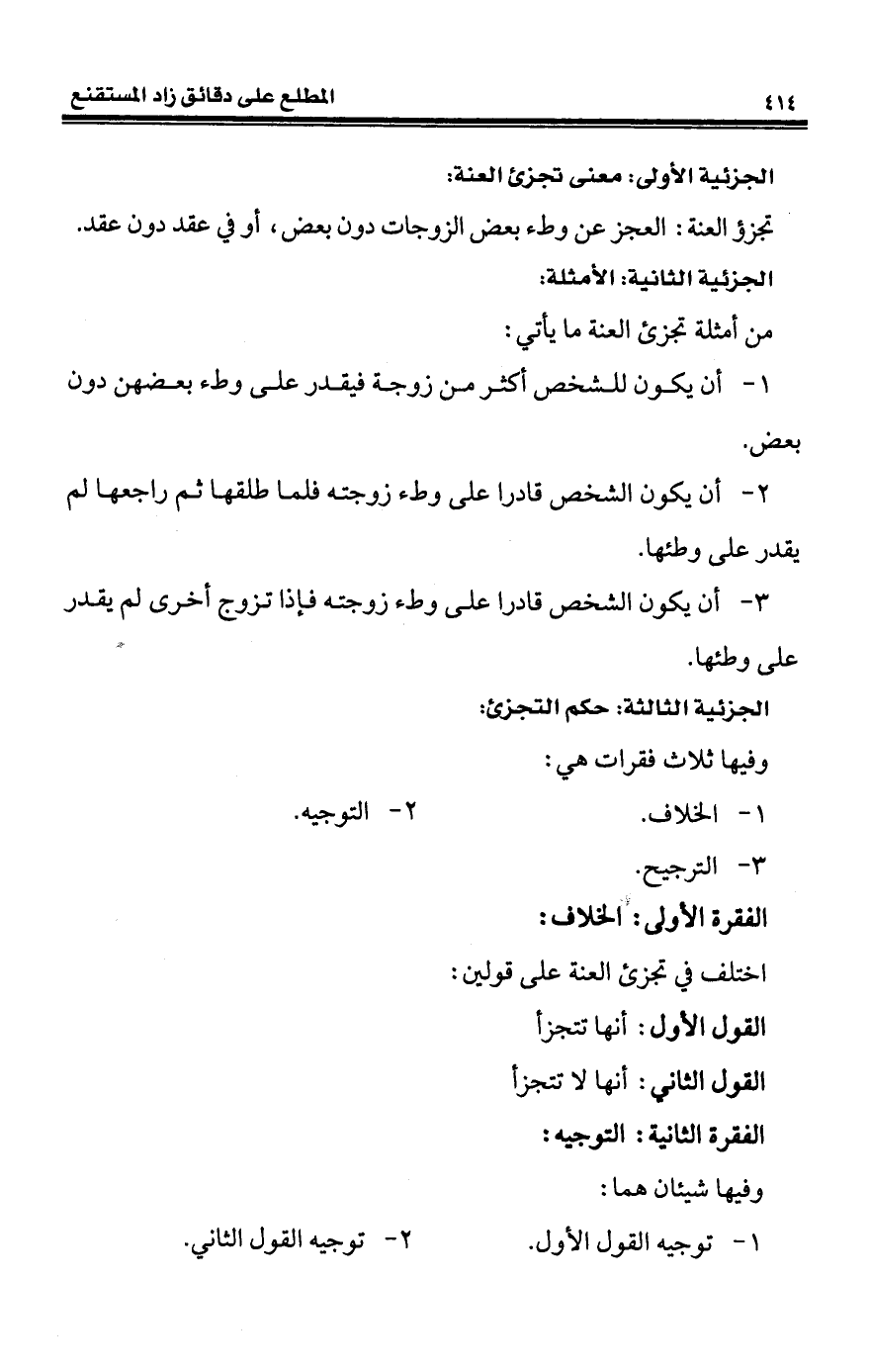 تجزؤ العنة: العجز عن وطء بعض الزوجات دون بعض، أو في عقد دون عقد.