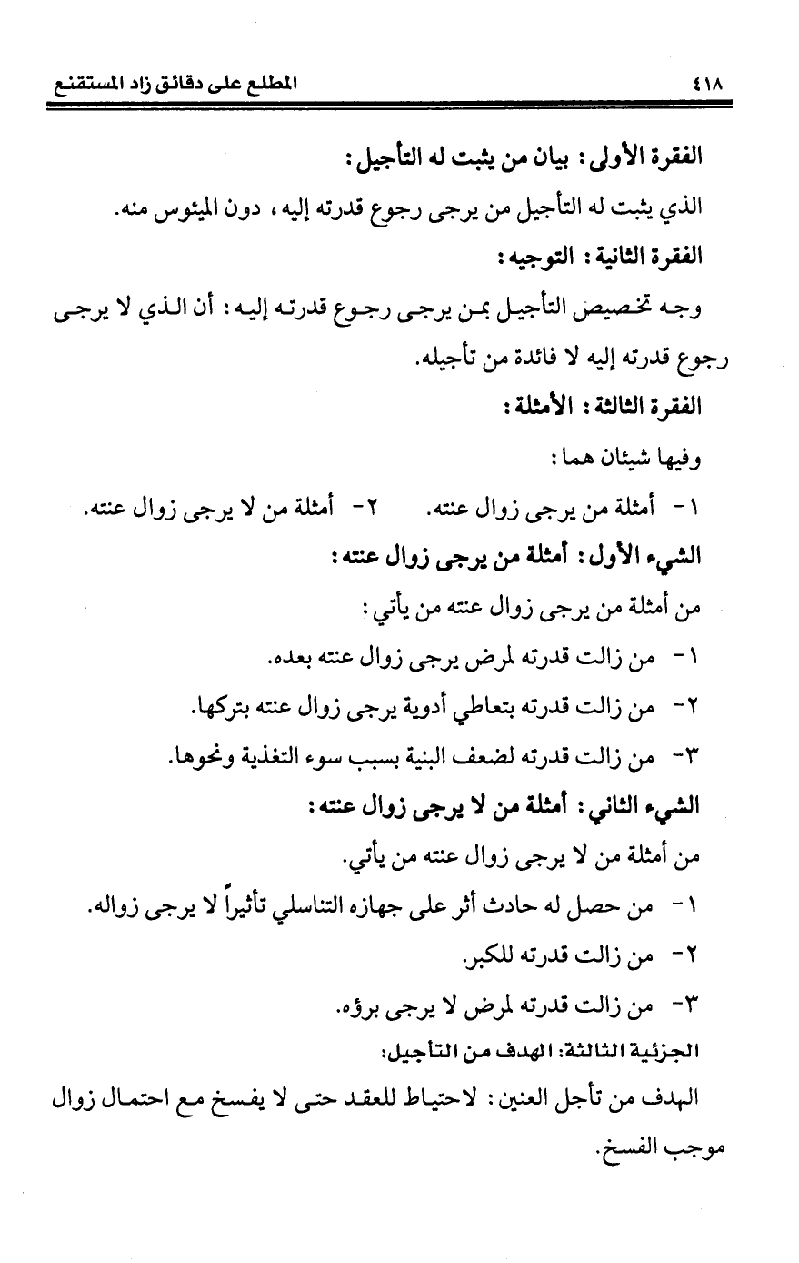 الذي يثبت له التأجيل من يرجى رجوع قدرته إليه، دون الميئوس منه.