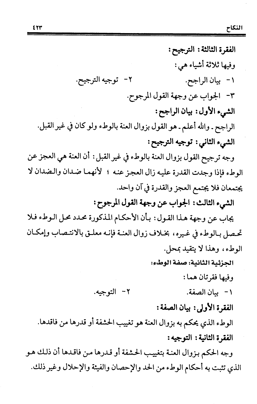 يجاب عن وجهة هذا القول: بأن الأحكام المذكورة محدد محل الوطء فلا تحصل بالوطء في غيره، بخلاف زوال العنة فإنه معلق بالانتصاب وإمكان الوطء، وهذا لا يتقيد بمحل.