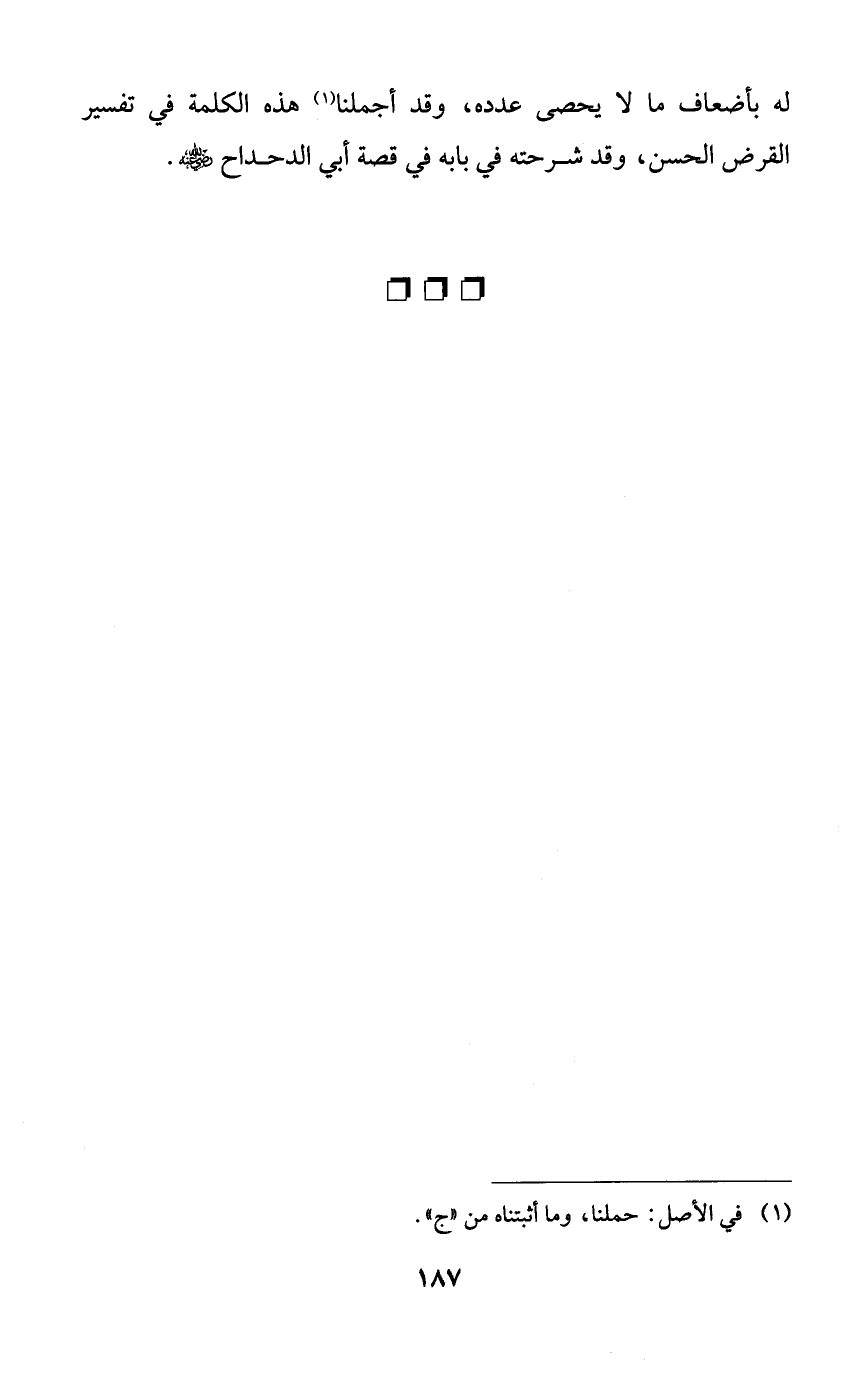 له بأضعاف ما لا يحصى عدده، وقد أجملنا هذه الكلمة في تفسير القرض الحسن، وقد شرحته في بابه في قصة أبي الدحداح رضي الله عنه.