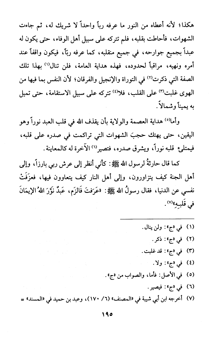 هكذا؛ لأنه أعطاه من النور ما عرفه رباً واحداً لا شريك له، ثم جاءت الشهوات، فأحاطت بقلبه، فلم تتركه على سبيل أهل الوفاء، حتى يكون له عبداً بجميع جوارحه، في جميع منقلبه، كما عرفه ربًّا، فيكون واقفاً عند أمره ونهيه، مراقباً لحدوده، فهذه هداية العامة، فلن تنال بهذا تلك الصفة التي ذكرت في التوراة والإنجيل والفرقان؛ لأن النفس بما فيها من الهوى غلبت على القلب، فلا تتركه على سبيل الاستقامة، حتى تميل به يميناً وشمالاً.