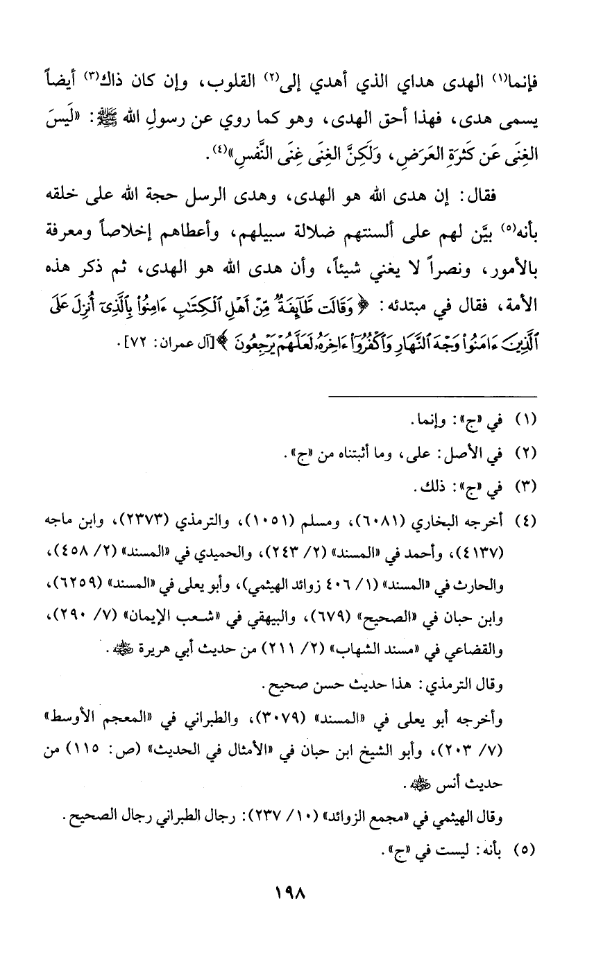فإنما الهدى هداي الذي أهدي إلى القلوب، وإن كان ذاك أيضاً يسمى هدى، فهذا أحق الهدى، وهو كما روي عن رسول الله صلى الله عليه وسلم: ((ليس الغنى عن كثرة العرض، ولكن الغنى غنى النفس)).