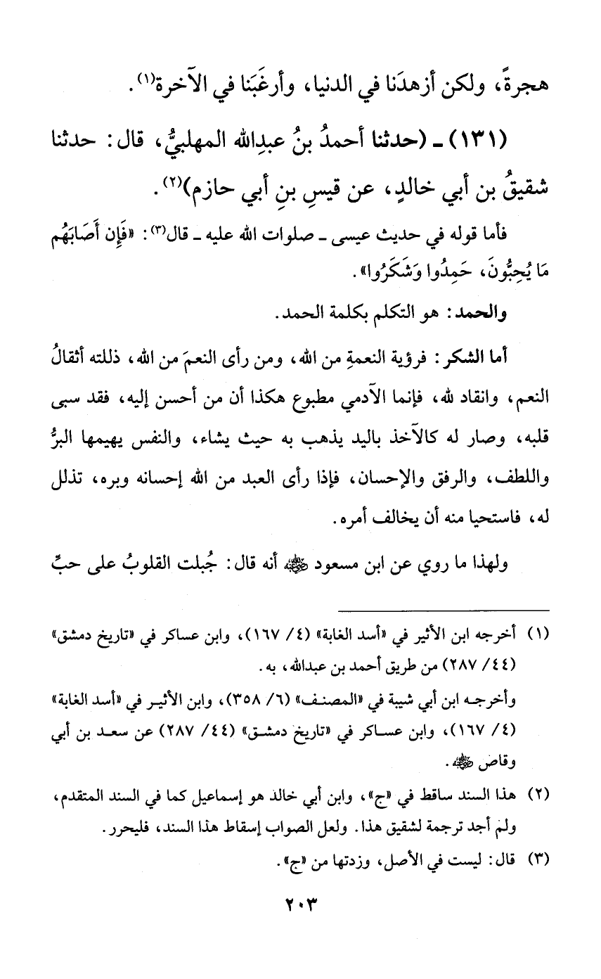 131 - (حدثنا أحمد بن عبد الله المهلبي، قال: حدثنا شقيق بن أبي خالدٍ، عن قيس بن أبي حازم).
