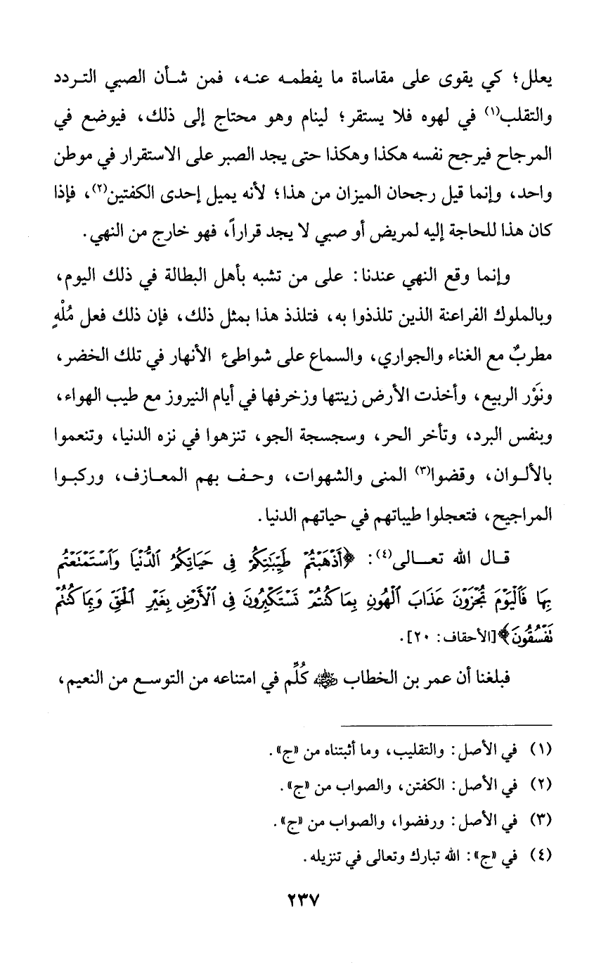 فبلغنا أن عمر بن الخطاب رضي الله عنه كلم في امتناعه من التوسع من النعيم،