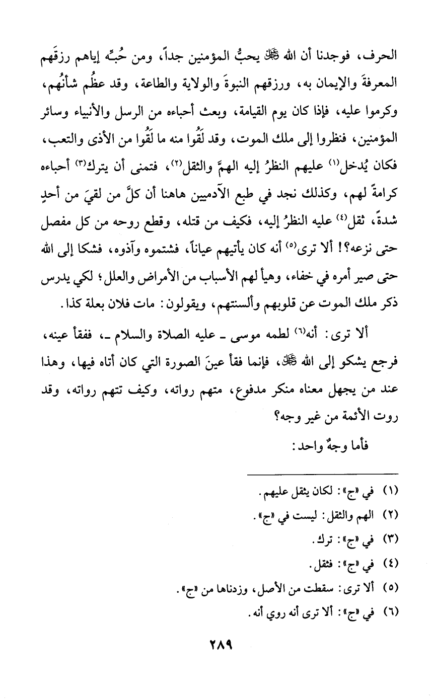 الحرف، فوجدنا أن الله عز وجل يحب المؤمنين جداً، ومن حبه إياهم رزقهم المعرفة والإيمان به، ورزقهم النبوة والولاية والطاعة، وقد عظم شأنهم، وكرموا عليه، فإذا كان يوم القيامة، وبعث أحباءه من الرسل والأنبياء وسائر المؤمنين، فنظروا إلى ملك الموت، وقد لقوا منه ما لقوا من الأذى والتعب، فكان يدخل عليهم النظر إليه الهم والثقل، فتمنى أن يترك أحباءه كرامةً لهم، وكذلك نجد في طبع الآدميين هاهنا أن كل من لقي من أحدٍ شدةً، ثقل عليه النظر إليه، فكيف من قتله، وقطع روحه من كل مفصل حتى نزعه؟! ألا ترى أنه كان يأتيهم عياناً، فشتموه وآذوه، فشكا إلى الله حتى صير أمره في خفاء، وهيأ لهم الأسباب من الأمراض والعلل؛ لكي يدرس ذكر ملك الموت عن قلوبهم وألسنتهم، ويقولون: مات فلان بعلة كذا.