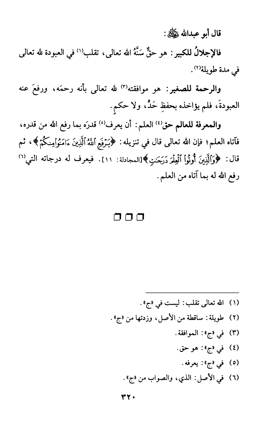 والمعرفة للعالم حق العلم: أن يعرف قدره بما رفع الله من قدره، فآتاه العلم؛ فإن الله تعالى قال في تنزيله: {يرفع الله الذين آمنوا منكم}، ثم قال: {والذين أوتوا العلم درجاتٍ}. فيعرف له درجاته التي رفع الله له بما آتاه من العلم.