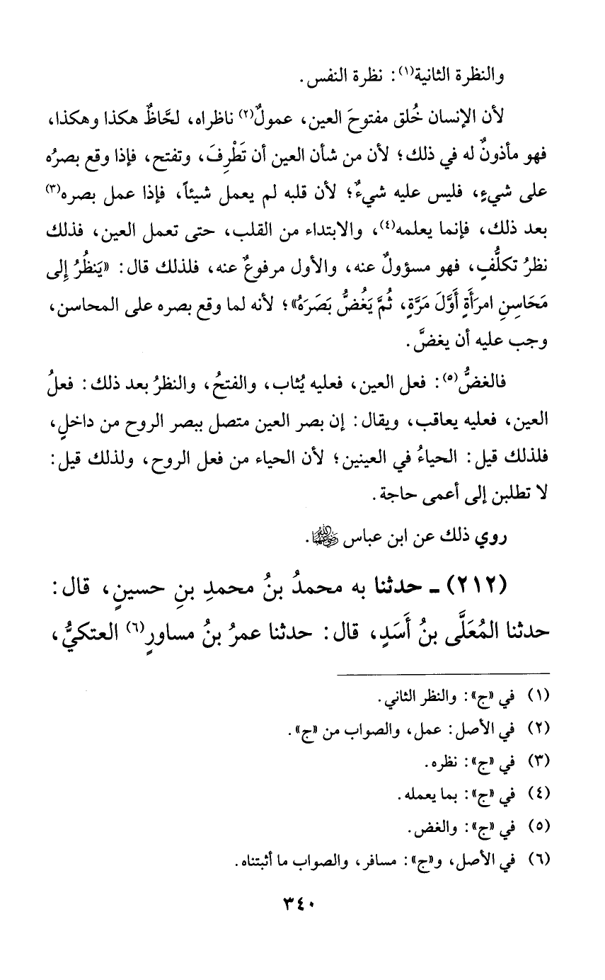 فالغض: فعل العين، فعليه يثاب، والفتح، والنظر بعد ذلك: فعل العين، فعليه يعاقب، ويقال: إن بصر العين متصل ببصر الروح من داخلٍ، فلذلك قيل: الحياء في العينين؛ لأن الحياء من فعل الروح، ولذلك قيل: لا تطلبن إلى أعمى حاجة.