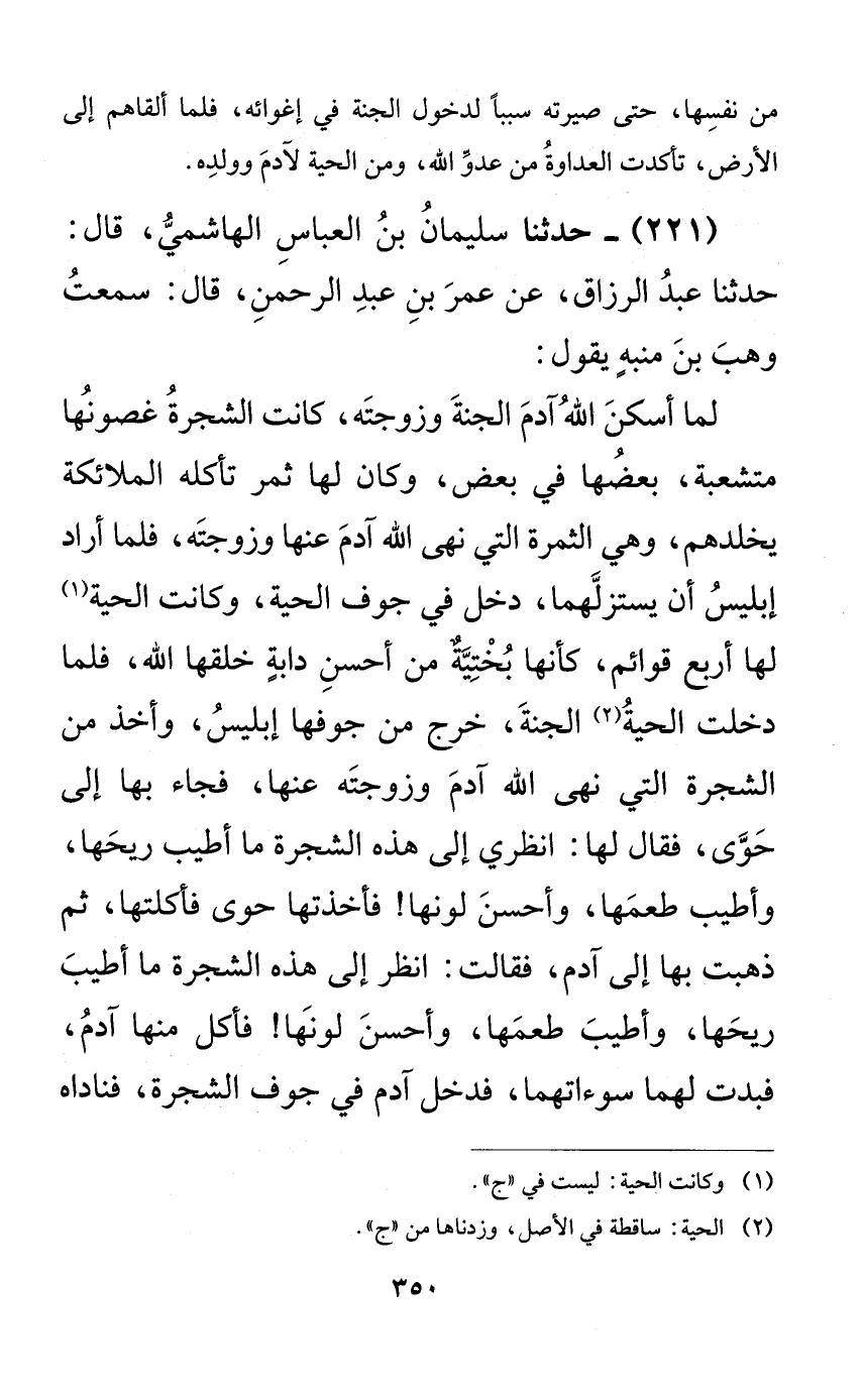 221 - حدثنا سليمان بن العباس الهاشمي، قال: حدثنا عبد الرزاق، عن عمر بن عبد الرحمن، قال: سمعت وهب بن منبهٍ يقول:
