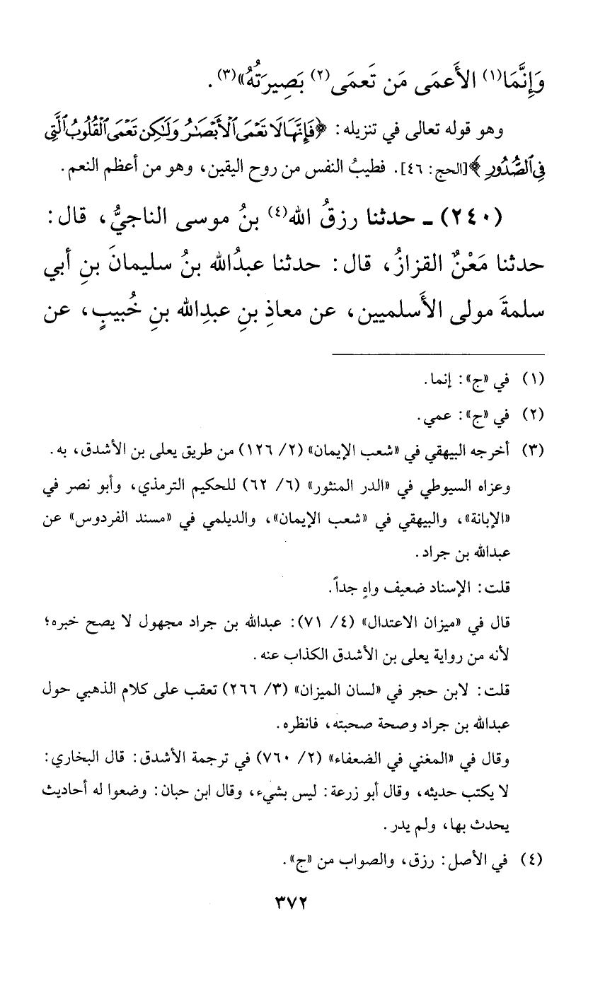 240 - حدثنا رزق الله بن موسى الناجي، قال: حدثنا معنٌ القزاز، قال: حدثنا عبد الله بن سليمان بن أبي سلمة مولى الأسلميين، عن معاذ بن عبد الله بن خبيبٍ، عن