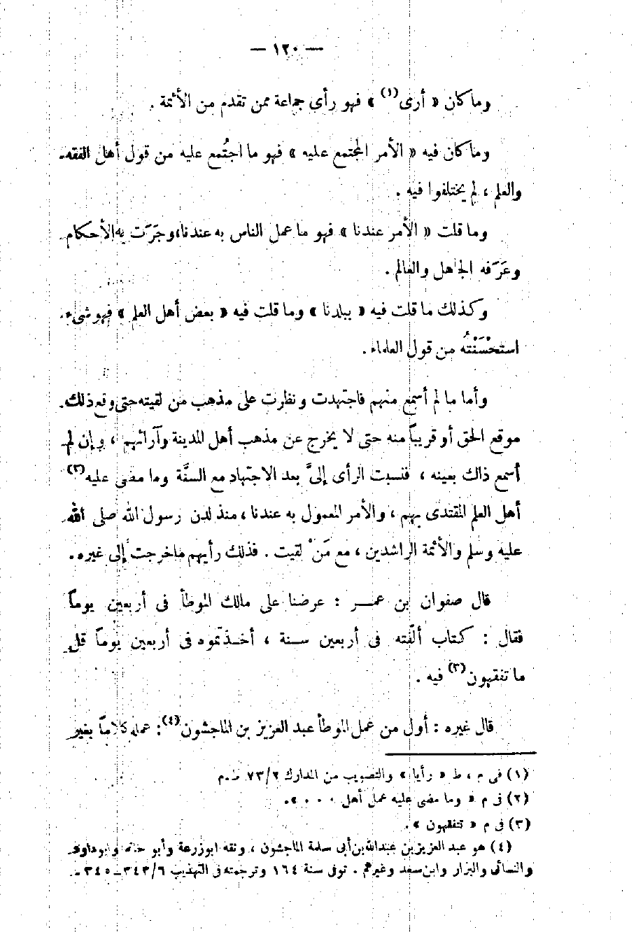 وما كان أرى فهو رأي جماعة ممن تقدم من الأئمة. وما كان فيه الأمر المجتمع عليه فهو ما اجتمع عليه من قول أهل الفقه والعلم لم يختلفوا فيه. وما قلت الأمر عندنا فهو ما عمل به الناس عندنا وجرت به الأحكام وعرفه الجاهل والعالم. وكذلك ما قلت فيه ببلدنا وما قلت فيه بعض أهل العلم فهو شيء استحسنته من قول العلماء.