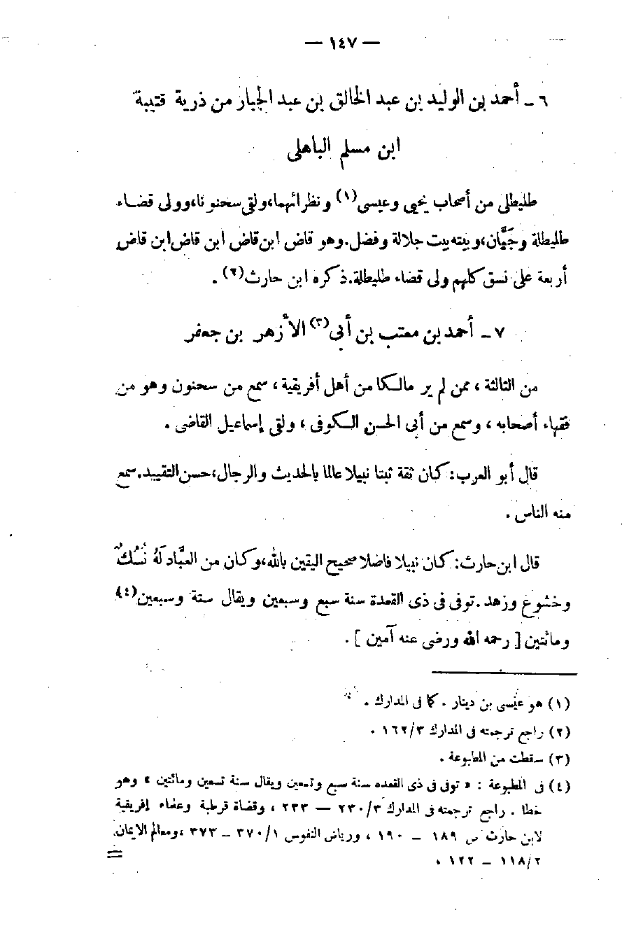 من الثالثة ممن لم ير مالكاً من أهل أفريقية سمع من سحنون وهو من فقهاء أصحابه وسمع من أبي الحسن الكوفي ولقى إسماعيل القاضي.