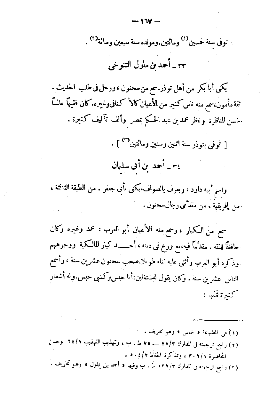 تنوخي يكنى أبا بكر من أهل توزر. سمع من سحنون ورحل في طلب الحديث. ثقة مأمون سمع منه ناس كثير من الأعيان كالأكنافي وغيره كان فقيهاً عالماً حسن المناظرة وناظر محمد بن عبد الحكم بمصر وألف تآليف كثيرة. توفي بتوزر سنة اثنين وستين ومائتين.
