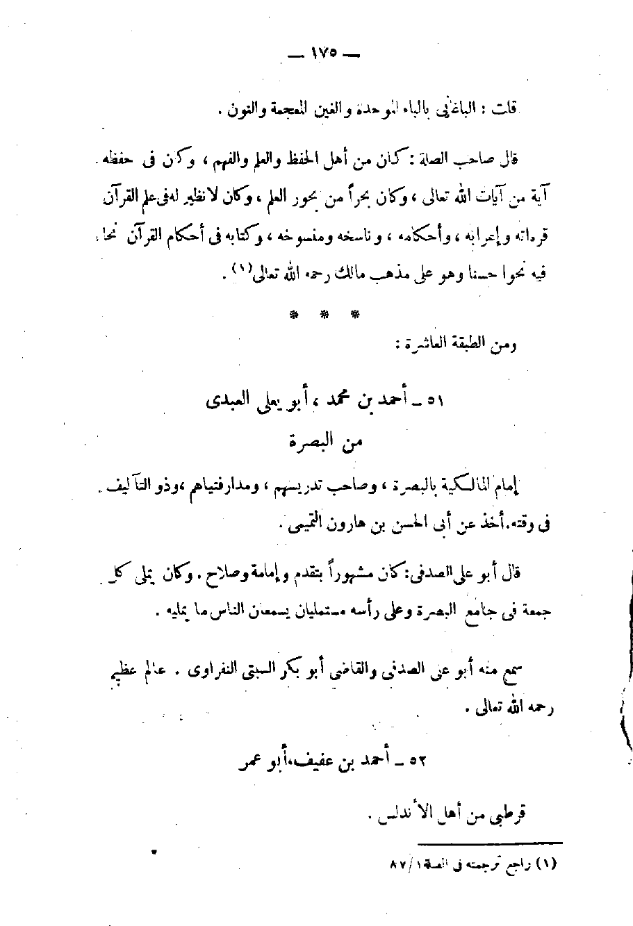 من البصرة إمام المالكية بالبصرة وصاحب تدريسهم ومدار فتياهم وذو التآليف في وقته أخذ عن أبي الحسن وهارون التميمي. قال أبو علي الصدفي: كان مشهوراً بتقدم وإمامة وصلاح. وكان يملي على كل جمعة في جامع البصرة وعلى رأسه مستمليان يسمعان الناس ما يمليه. سمع منه أبو علي الصدفي والقاضي أبو بكر السبتي النفزاوي عالم عظيم رحمه الله تعالى.