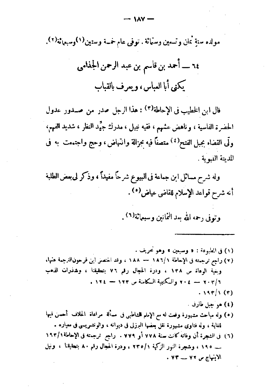 مولده سنة ثمان وتسعين وستمائة توفي عام خمسة وسبعين وسبعمائة.