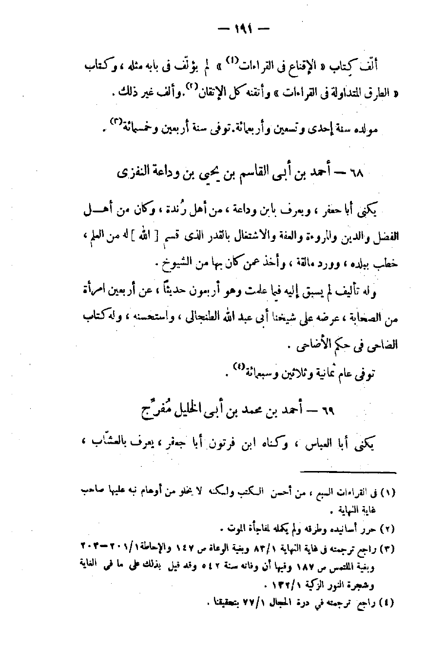 ألف كتاب الإقناع في القراءات لم يؤلف في بابه مثله وكتاب الطرق المتداولة في القراءات وأتقنه كل الإتقان. وألف غير ذلك. مولده سنة إحدى وتسعين وأربعمائة. توفي سنة أربعين وخمسمائة.