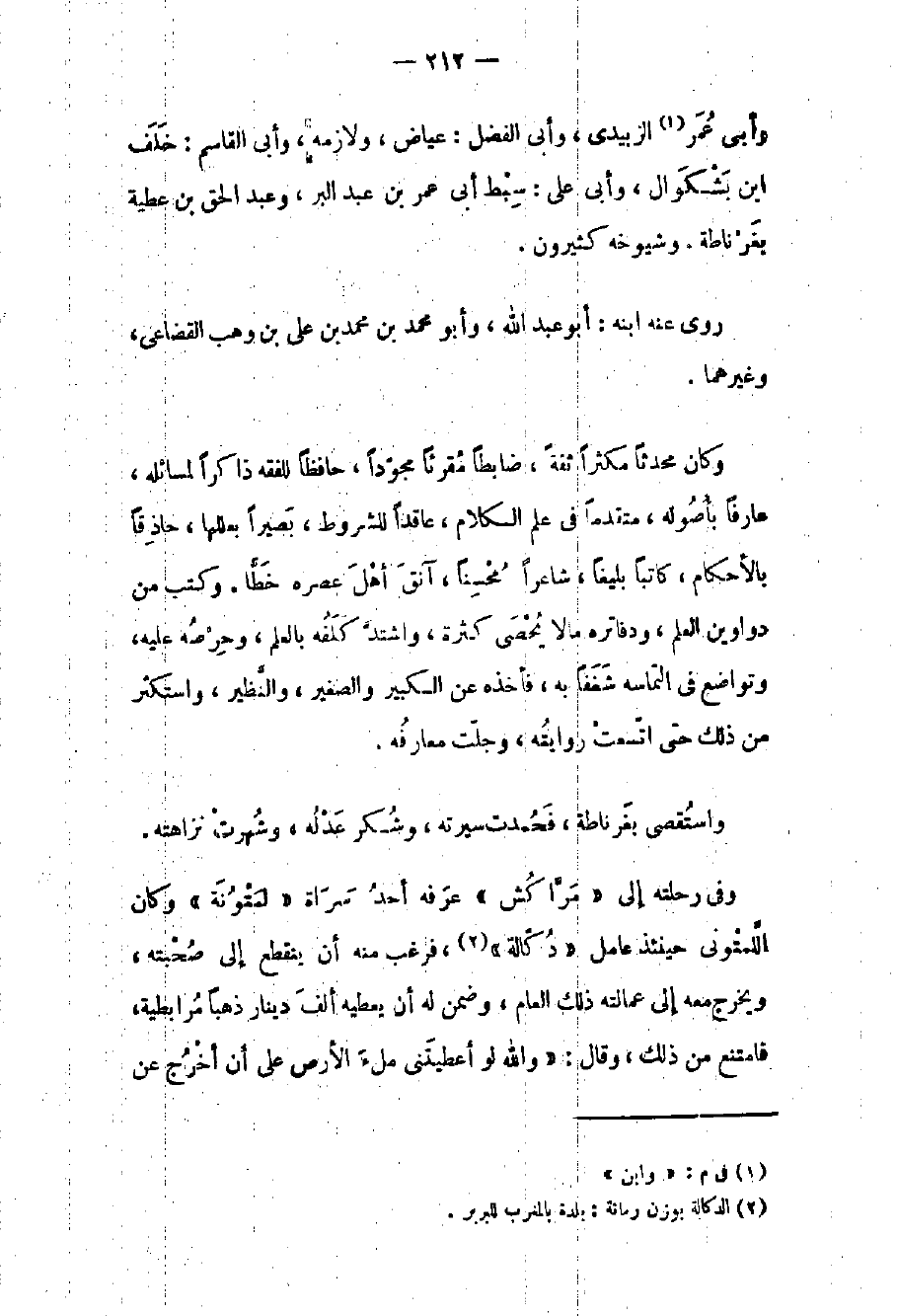وفي رحلته إلى مراكش عرفه أحد سراة لمتونة وكان اللمتوني حينئذ عامل دكالة فرغب منه أن ينقطع إلى صحبته ويخرج معه إلى عمالته ذلك العام وضمن له أن يعطيه ألف دينار ذهباً مرابطية فامتنع من ذلك وقال: والله لو أعطيتني ملء الأرض على أن أخرج عن