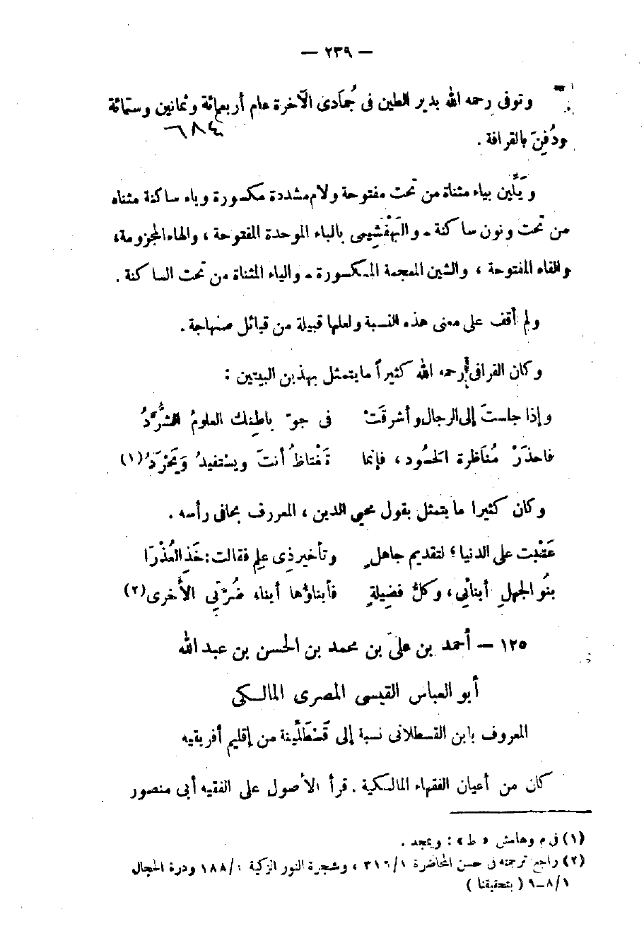 ويلين بياء مثناة من تحت مفتوحة ولام مشددة مكسورة وياء ساكنة مثناة من تحت ونون ساكنة والبهفشيمي بالباء الموحدة المفتوحة والهاء المجزومة والفاء المفتوحة والشين المعجمة المكسورة والياء المثناة من تحت الساكنة. ولم أقف على معنى هذه النسبة ولعلها قبيلة من قبائل صنهاجة. وكان القرافي رحمه الله كثيراً ما يتمثل بهذين البيتين: