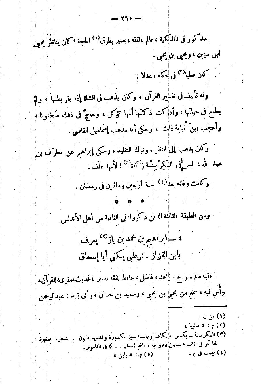 مذكور في المالكية عالم بالفقه بصير بطرق الحجة كان يناظر يحيى بن مزين ويحيى بن يحيى كان صلباً في حكمه عدلاً وله تأليف في تفسير القرآن وكان يذهب في الشاة إذا بقر بطنها ولم يطمع في حياتها وأدركت ذكاتها أنها تؤكل وحاج في ذلك سحنوناً وأعجب بن لبابة ذلك وحكى أنه مذهب إسماعيل القاضي. وكان يذهب إلى النظر وترك التقليد وحكى إبراهيم عن مطرف بن عبد الله: ليس في الكرسنة زكاة لأنها علف. وكانت وفاته سنة أربعين ومائتين في رمضان.