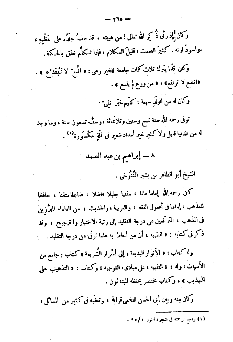 الشيخ أبو الطاهر بن بشير التنوخي كان رحمه الله إماماً عالماً مفتياً جليلاً فاضلاً ضابطاً متقناً حافظاً للمذهب إماماً في أصول الفقه والعربية والحديث من العلماء المبرزين في المذهب المترفعين عن درجة التقليد إلى رتبة الاختيار والترجيح وقد ذكر في كتابه التنبيه أن من أحاط به علماً ترقى عن درجة التقليد.