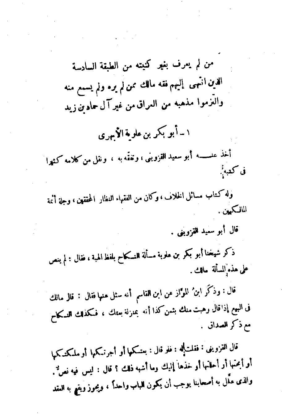 من الطبقة السادسة الذين انتهى إليهم فقه مالك ممن لم يره ولم يسمع منه والتزموا مذهبه من العراق من غير آل حماد بن زيد