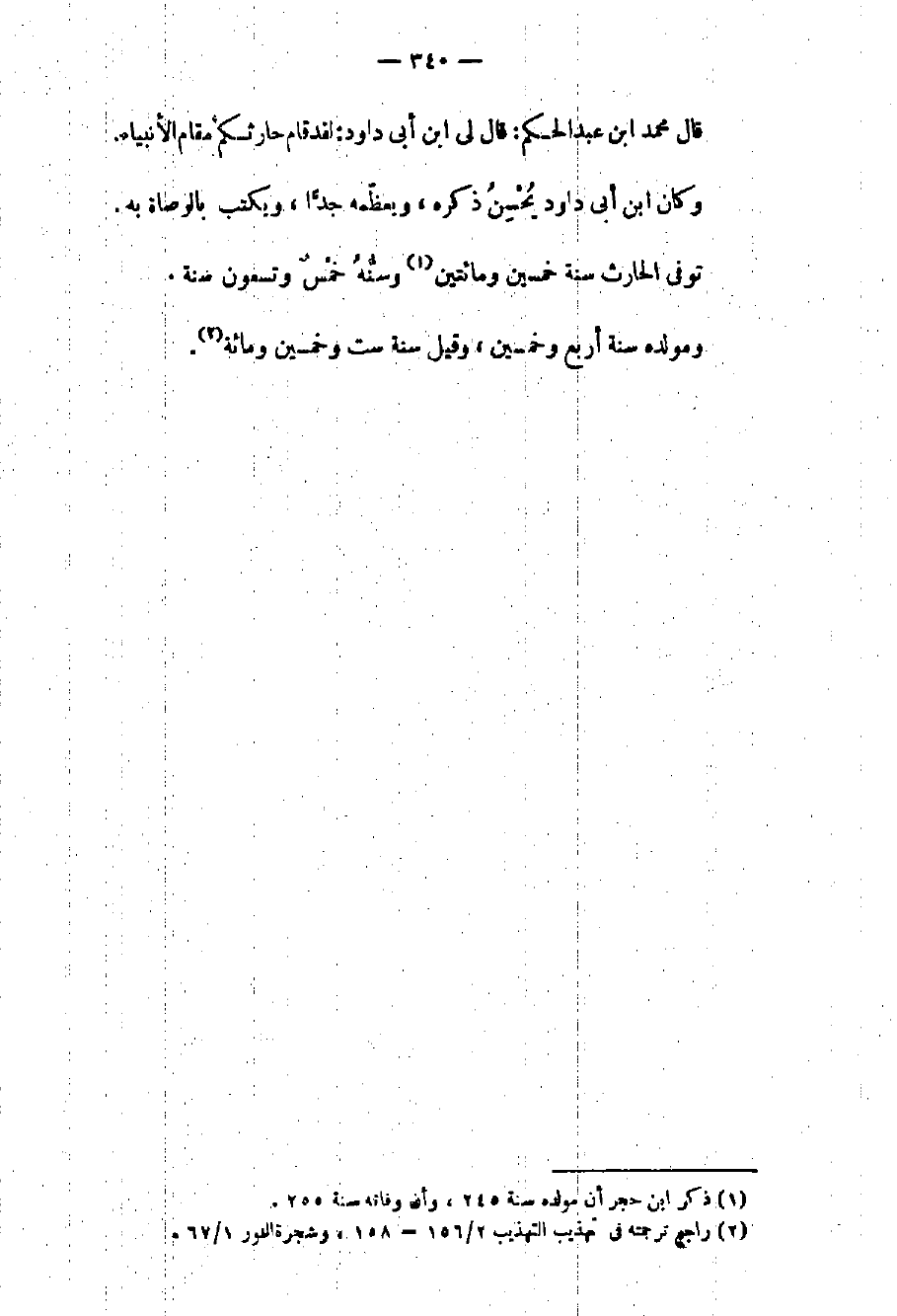 قال محمد بن عبد الحكم: قال لي بن أبي داود: لقد قام حارثكم مقام الأنبياء وكان بن أبي داود يحسن ذكره ويعظمه جداً ويكتب بالوصاة به. توفي الحارث سنة خمسين ومائتين وسنه خمس وتسعون سنة مولده سنة أربع وخمسين وقيل سنة ست وخمسين ومائة.