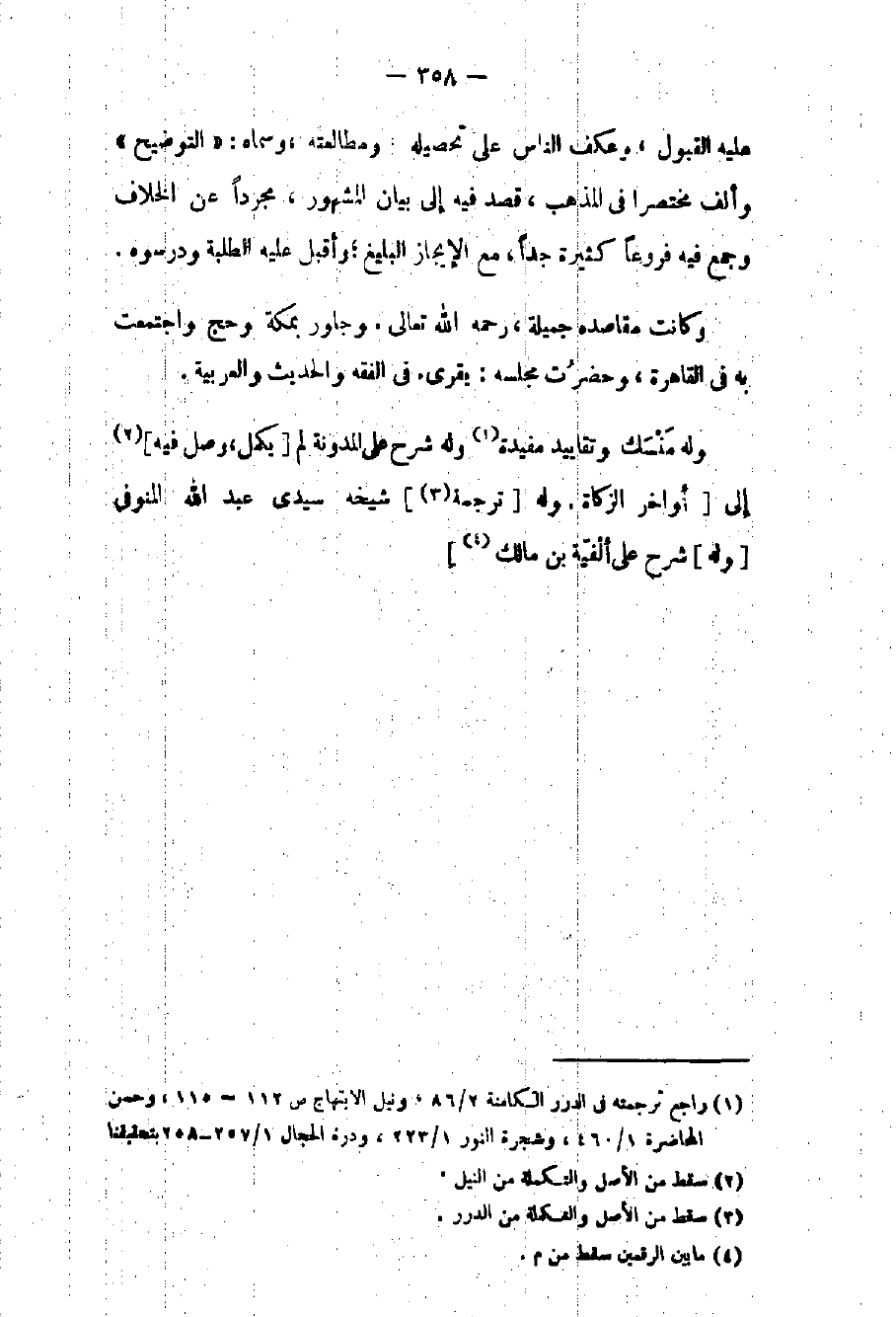 وكانت مقاصده جميلة رحمه الله تعالى وجاور بمكة وحج واجتمعت به في القاهرة وحضرت مجلسه: يقرئ في الفقه والحديث والعربية وله منسك وتقاييد مفيدة وله شرح على المدونة لم يكمل وصل فيه إلى أواخر الزكاة وله ترجمة شيخه سيدي عبد الله المنوفي وله شرح على ألفية ابن مالك.