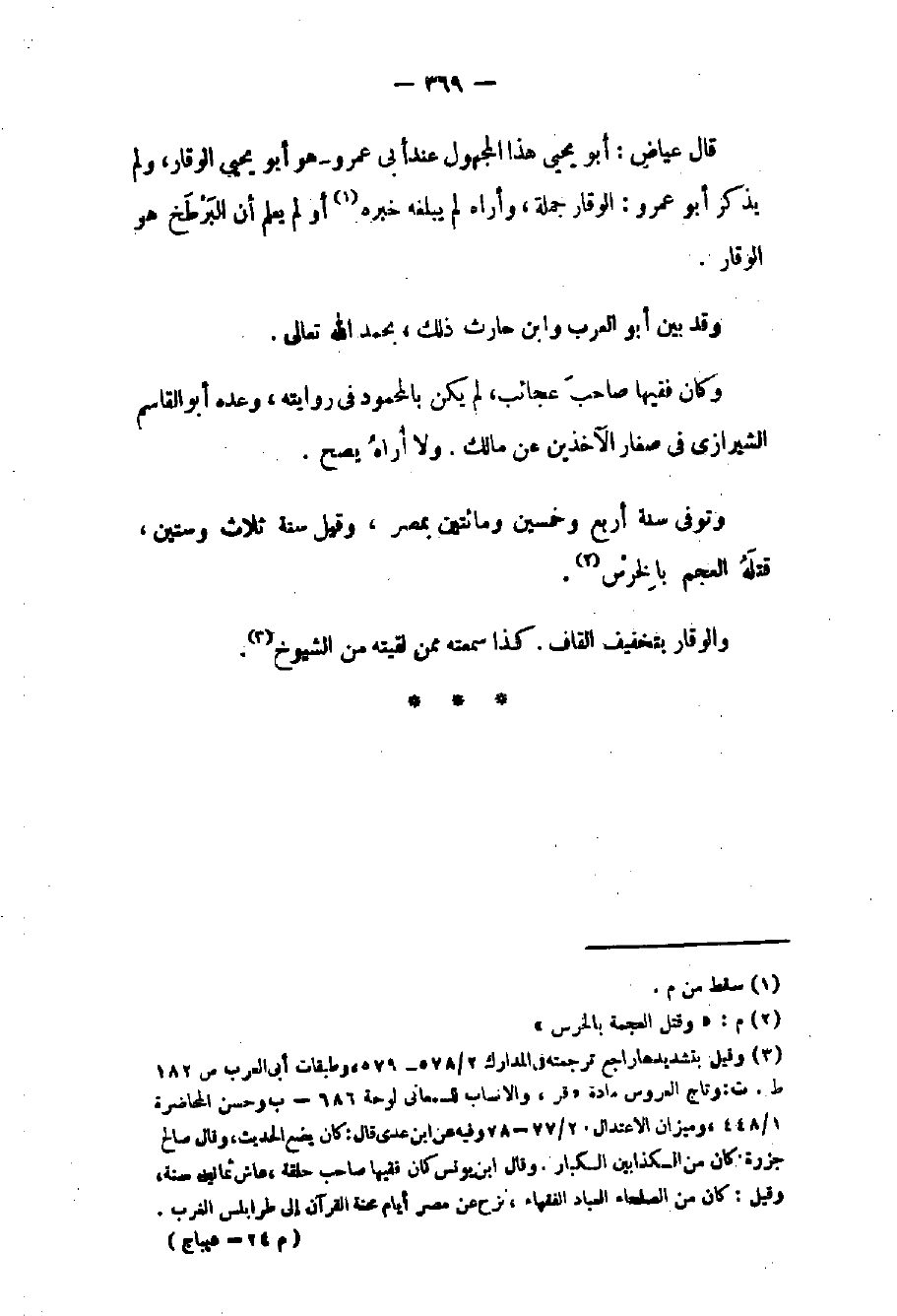 قال عياض: أبو يحيى هذا المجهول عند أبي عمرو - هو أبو يحيى الوقار ولم يذكر أبو عمرو: الوقار جملة وأراه لم يبلغه خبره أو لم يعلم أن البرطخ هو الوقار وقد بين أبو العرب وابن حارث ذلك بحمد الله تعالى.