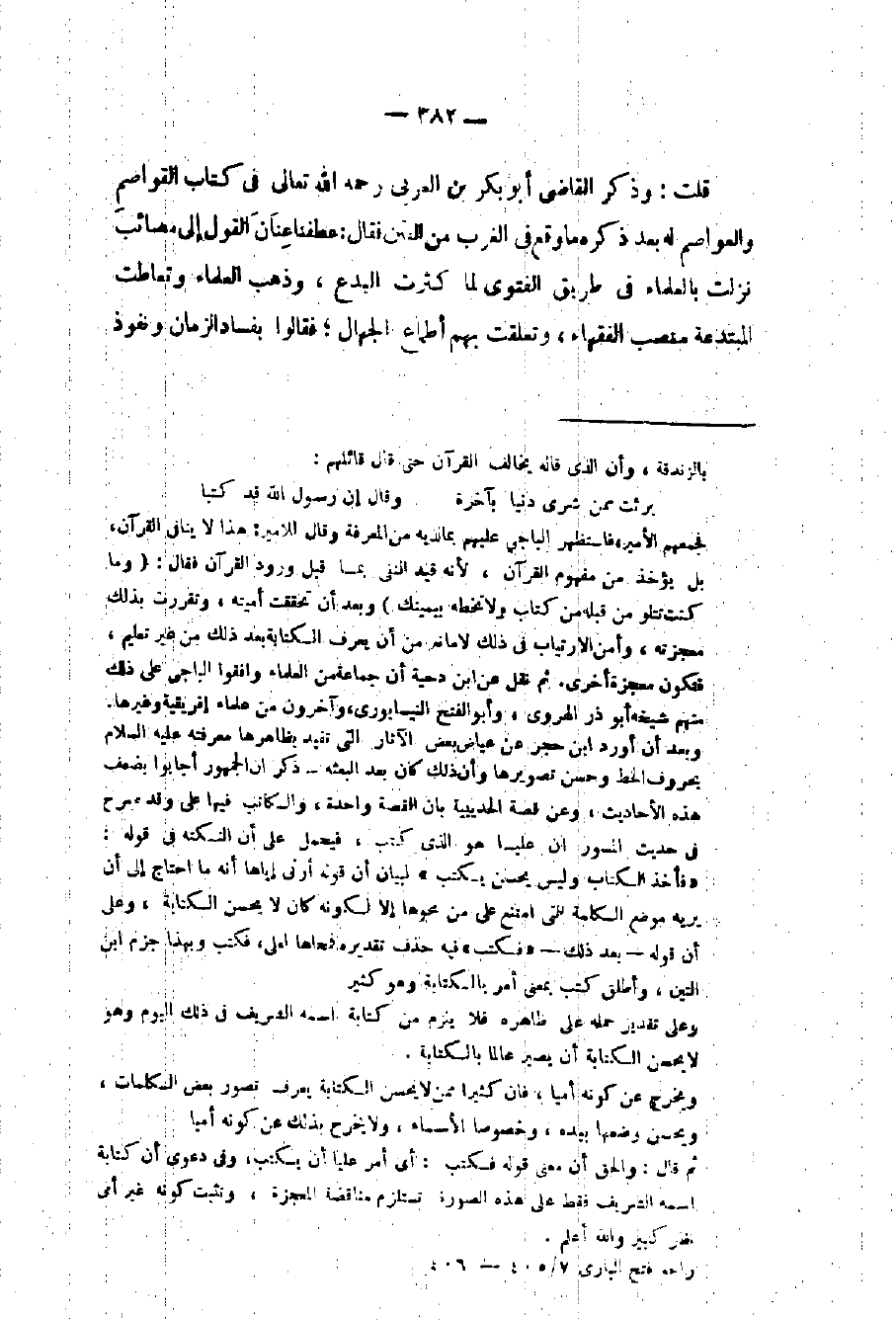 قلت: وذكره القاضي أبو بكر بن العربي رحمه الله تعالى في كتاب القواصم والعواصم له بعد ذكره ما وقع في الغرب من الفتن فقال: عطفنا عنان القول إلى مصائب نزلت بالعلماء في طريق الفتوى لما كثرت البدع وذهب العلماء وتعاطت المبتدعة منصب الفقهاء وتعلقت بهم أطماع الجهال فقالوا بفساد الزمان ونفوذ