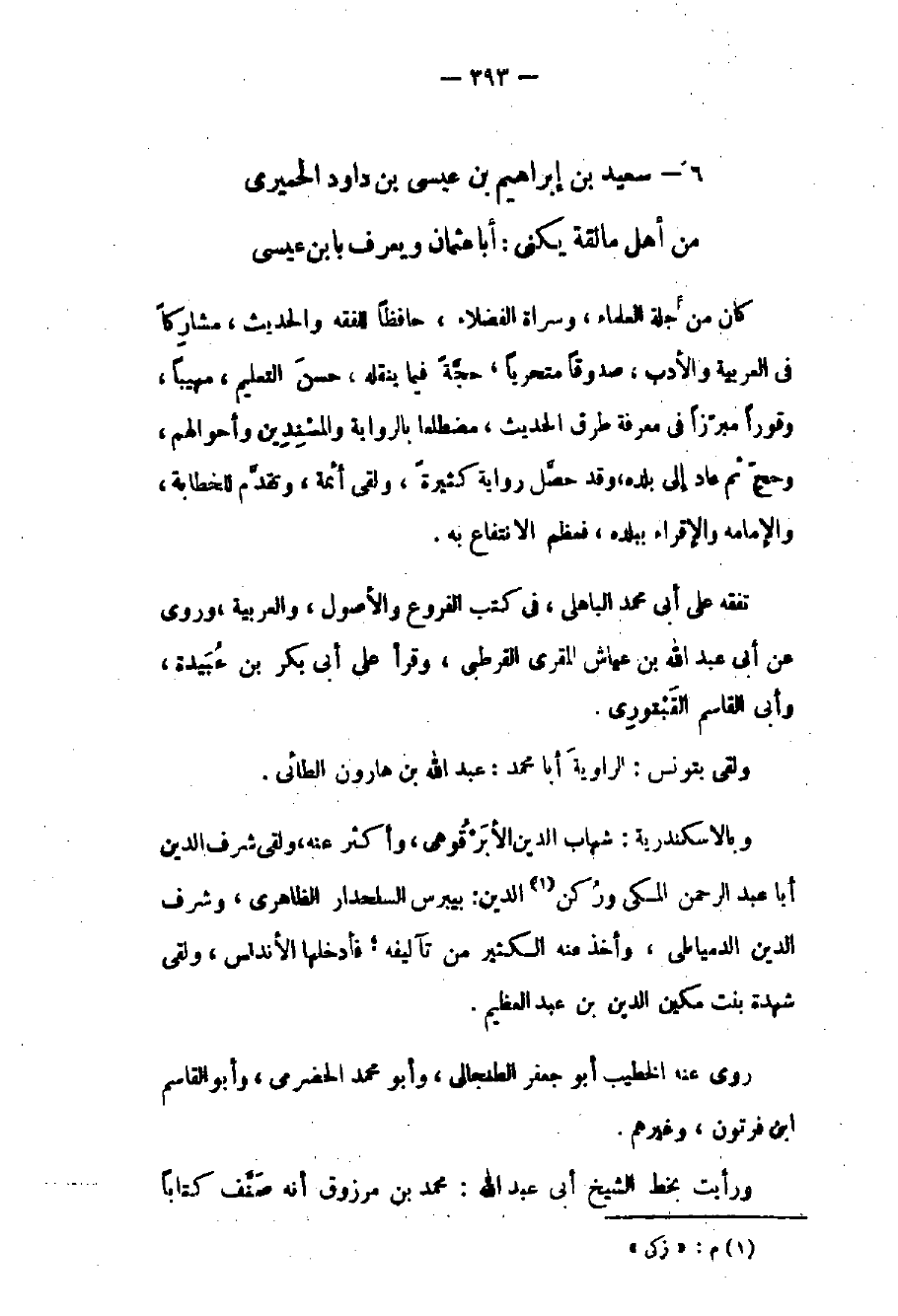 من أهل مالقة يكنى: أبا عثمان ويعرف بابن عيسى كان من جلة العلماء وسراة الفضلاء حافظاً للفقه والحديث مشاركاً في العربية والأدب صدوقاً متحرياً حجة فيما ينقله حسن التعليم مهيباً وقوراً مبرزاً في معرفة طرق الحديث مضطلعاً بالرواية والمسندين وأحوالهم وحج ثم عاد إلى بلده وقد حصل رواية كثيرة ولقي أئمة وتقدم للخطابة والإمامة والإقراء ببلده فعظم الانتفاع به. تفقه على أبي محمد الباهلي في كتب الفروع والأصول والعربية وروى عن أبي عبد الله بن عياش المقري القرطبي وقرأ على أبي بكر بن عبيدة وأبي القاسم القبتوري ولقي بتونس: الراوية أبا محمد: عبد الله بن هارون الطائي وبالإسكندرية: شهاب الدين الابرقوهي وأكثر عنه ولقي شرف الدين أبا عبد الرحمن المكي وركن الدين بيبرس السلحدار الظاهري وشرف الدين الدمياطي وأخذ عنه الكثير من تآليفه فأدخلها الأندلس ولقي شهدة بنت مكين الدين بن عبد العظيم.