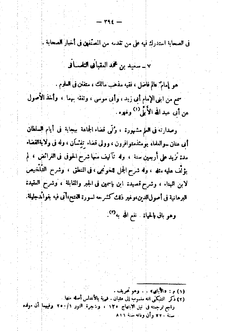 وصدراته في العلم مشهورة ولي قضاء الجماعة ببجاية في أيام السلطان أبي عنان - والعلماء يومئذ متوافرون وولي قضاء تلمسان وله في ولاية القضاء مدة تزيد على أربعين سنة وله تآليف منها شرح الحوفي في الفرائض لم يؤلف عليه مثله وله شرح الجمل للخونجي في المنطق وشرح التلخيص لابن البناء وشرح قصيدة ابن ياسمين في الجبر والمقابلة وشرح العقيدة البرهانية في أصول الدين وغير ذلك كشرحه لسورة الفتح أتى فيه بفوائد جليلة وهو باق بالحياة نفع الله به.