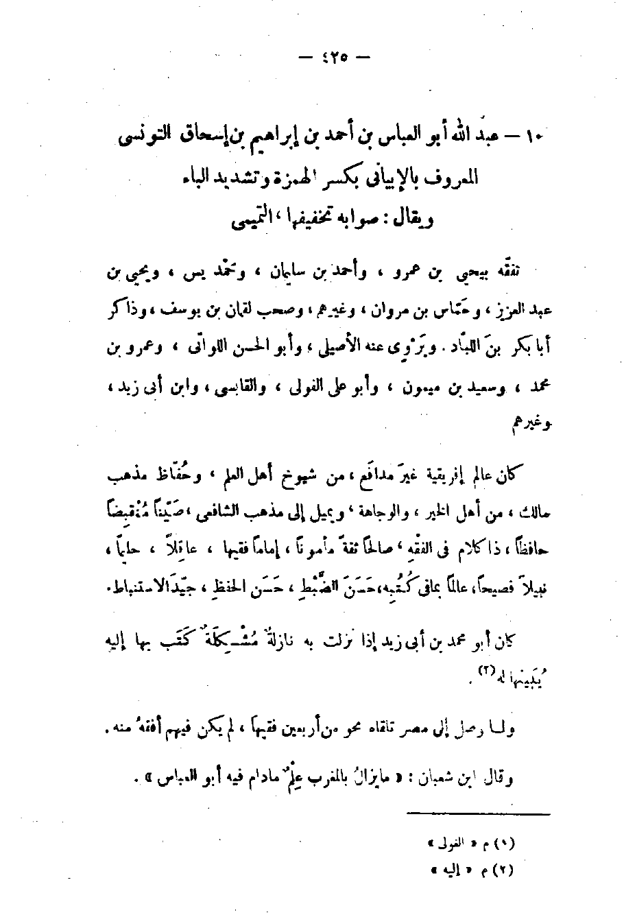 بكسر الهمزة وتشديد الباء ويقال: صوابه تخفيفها التميمي تفقه بيحيى بن عمرو وأحمد بن سليمان وحمديس ويحيى بن عبد العزيز وحماس بن مروان وغيرهم وصحب لقمان بن يوسف وذاكر أبا بكر بن اللباد ويروى عنه الأصيلي وأبو الحسن اللواتي وعمرو بن محمد وسعيد بن ميمون وأبو علي الغولي والقابسي وابن أبي زيد وغيرهم.