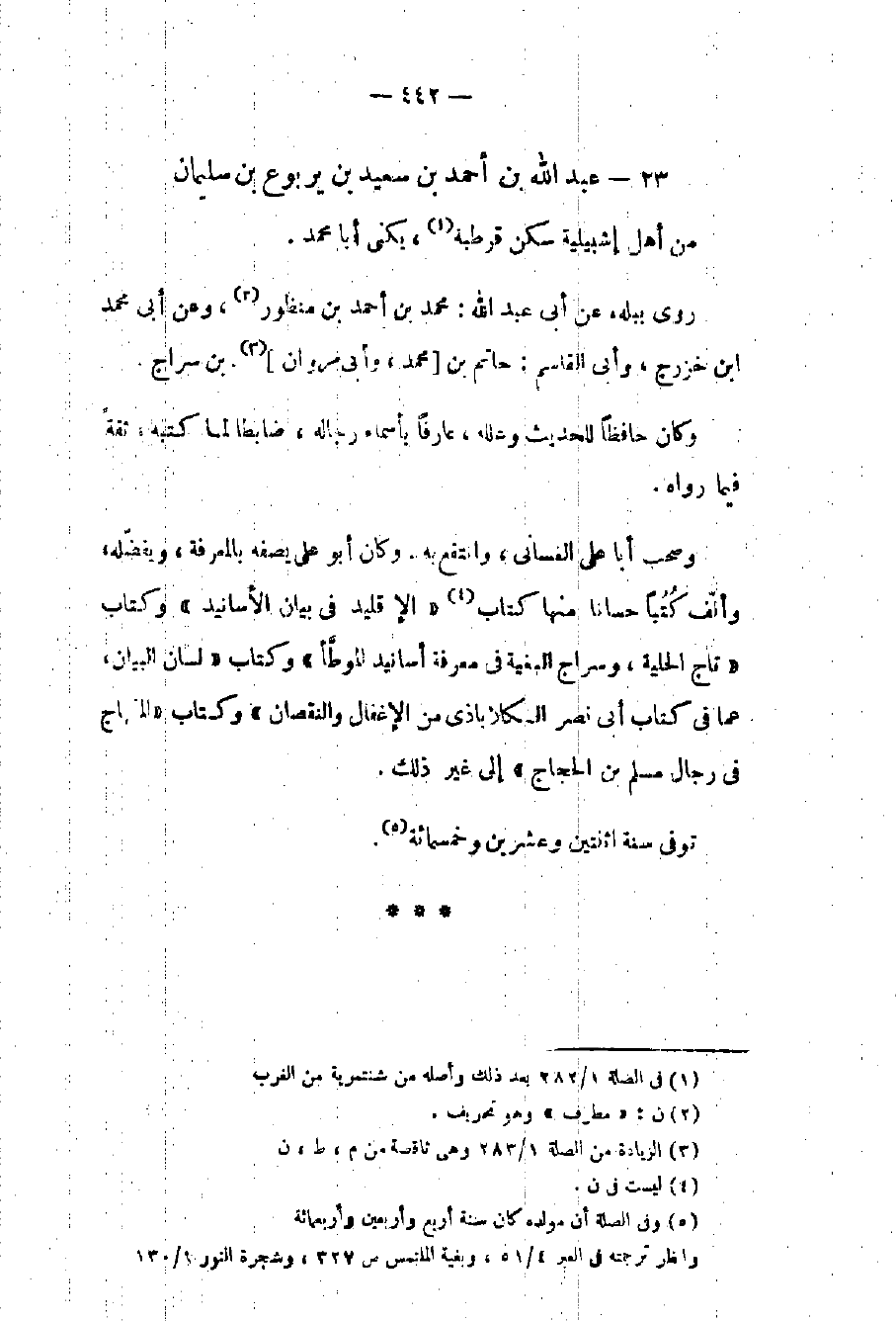 وصحب أبا علي الغساني وانتفع به وكان أبو علي يصفه بالمعرفة ويفضله وألف كتباً حساناً منها كتاب الإقليد في بيان الأسانيد وكتاب تاج الحلية وسراج البغية في معرفة أسانيد الموطأ وكتاب لسان البيان عما في كتاب أبي نصر الكلاباذي من الإغفال والنقصان وكتاب المنهاج في رجال مسلم بن الحجاج إلى غير ذلك. توفي سنة اثنتين وعشرين وخمسمائة.