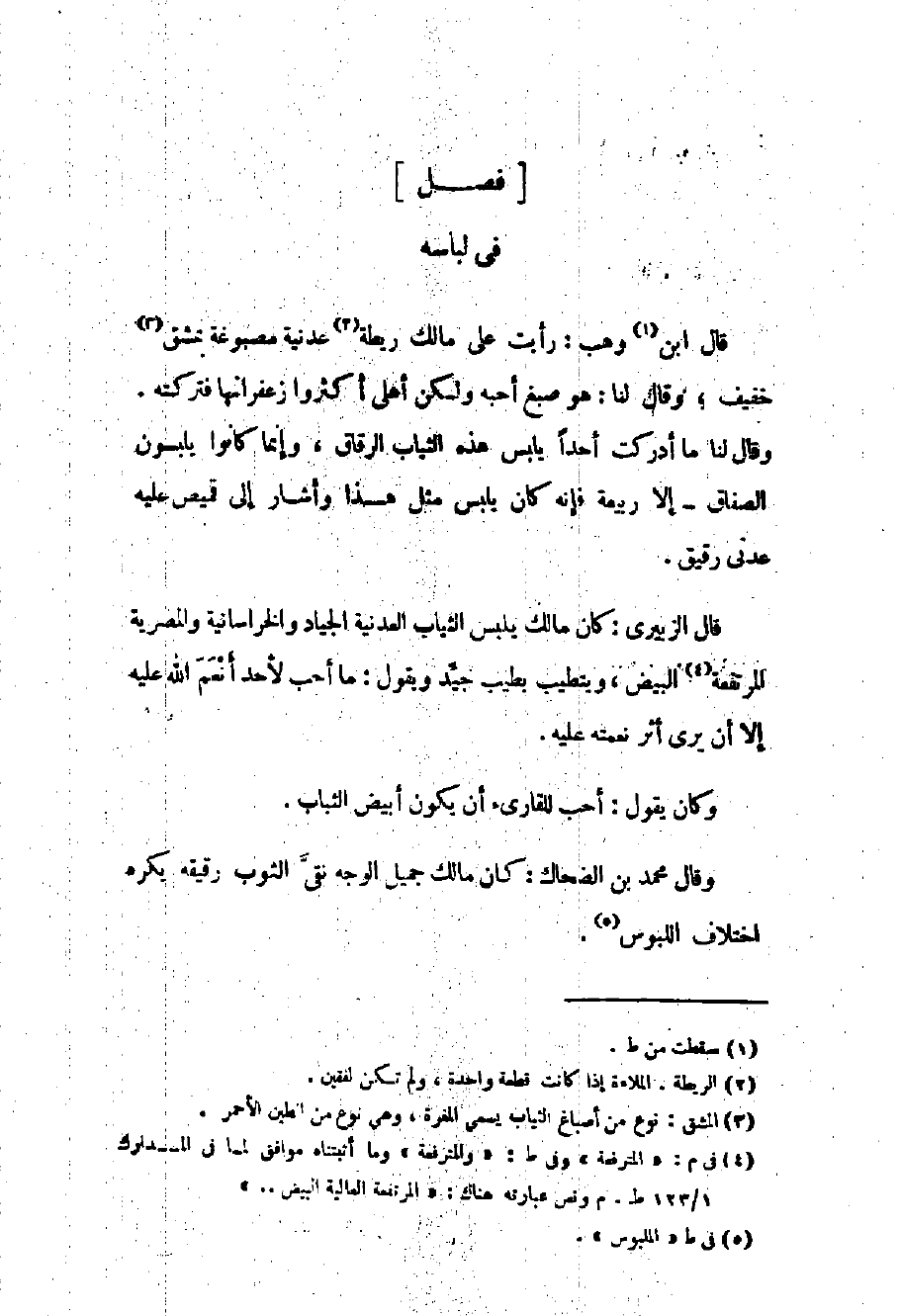 وقال محمد بن الضحاك: كان مالك جميل الوجه نقي الثوب رقيقه يكره اختلاف اللبوس.