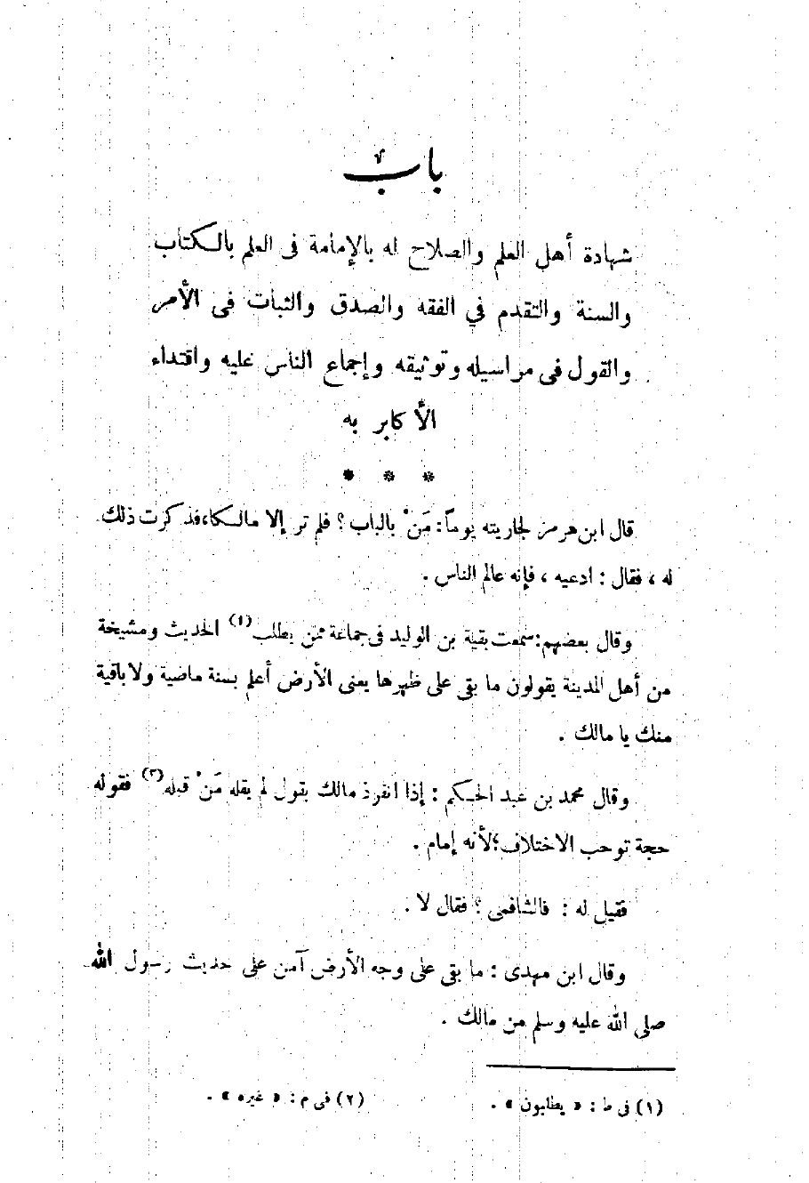 باب في ابتداء طلبه للعلم وصبره عليه وتحريه فيمن يأخذ عنه وشهادة أهل العلم والصلاح له بالإمامه في العلم بالكتاب والسنة وتحرية في العلم والفتيا والحديث وروعة وصفة مجلسه ونشره العلم وتوقيره حديث النبي صلى الله عليه وسلم