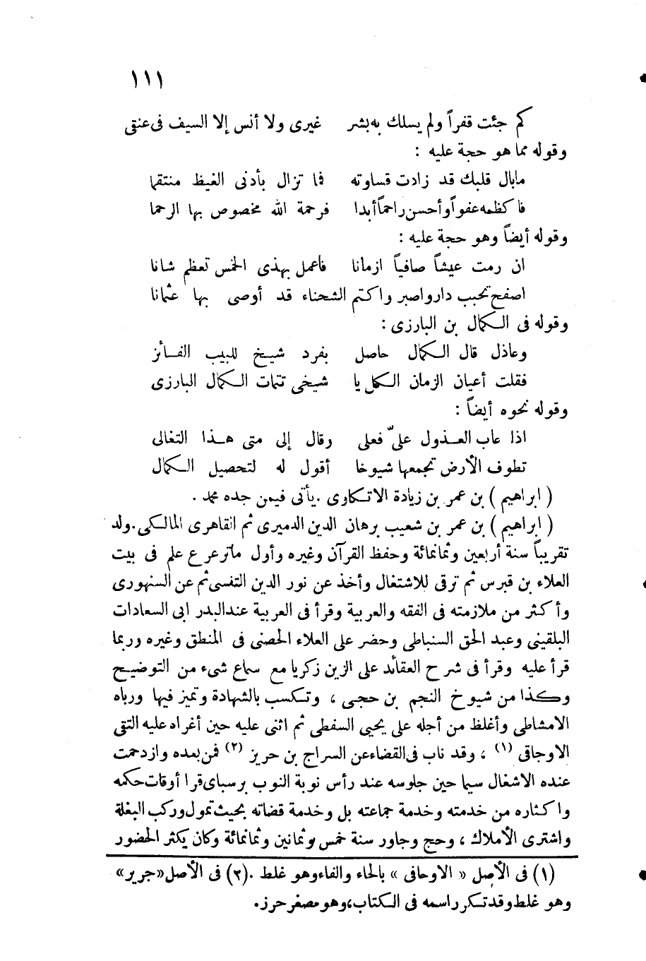 (فَقلت أَعْيَان الزَّمَان الْكل يَا ... شَيْخي تتمات الْكَمَال الْبَارِزِيّ)