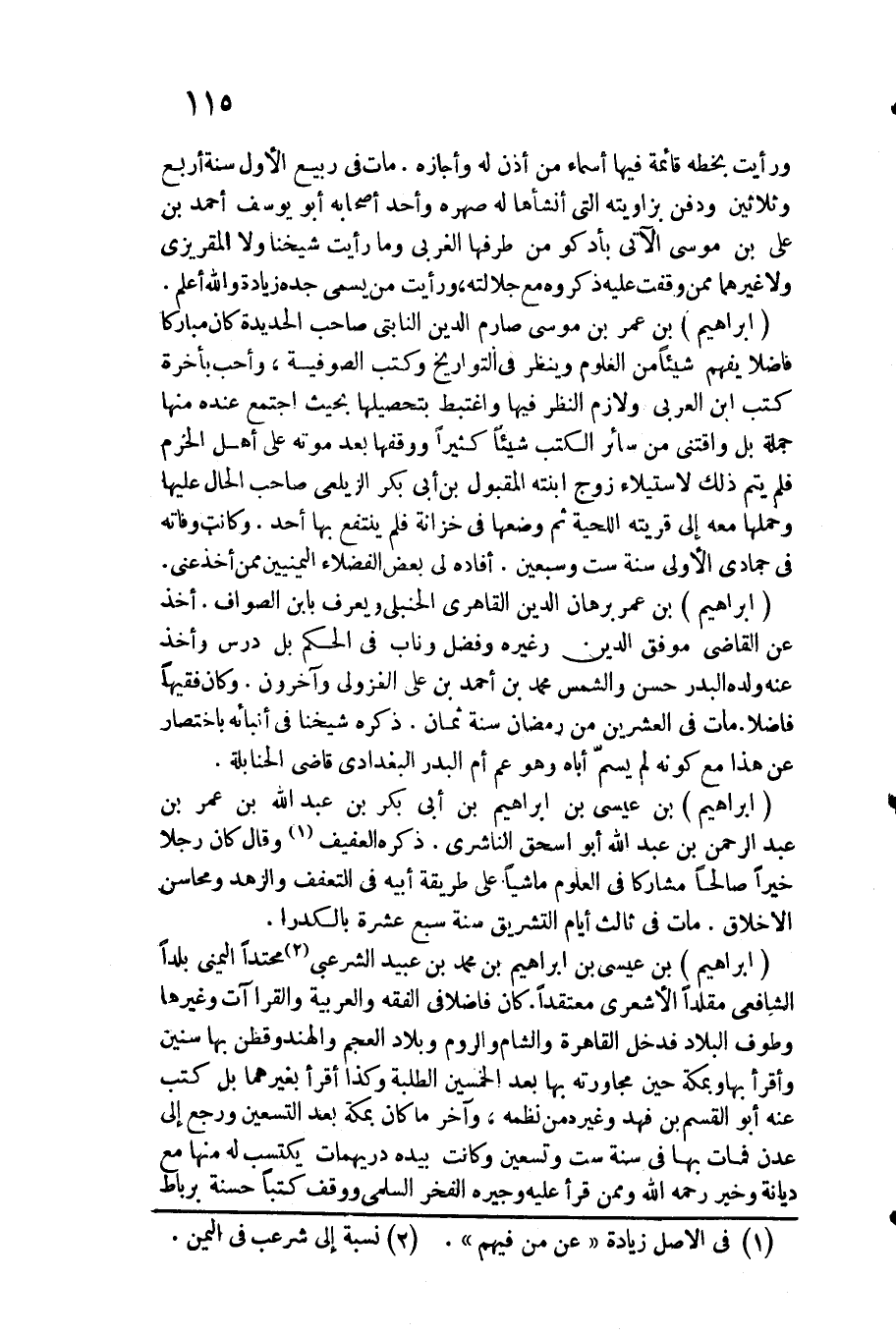 إِبْرَاهِيم بن عِيسَى بن إِبْرَاهِيم بن أبي بكر بن عبد الله بن عمر بن عبد الرَّحْمَن بن عبد الله أَبُو اسحق النَّاشِرِيّ. ذكره الْعَفِيف وَقَالَ كَانَ رجلا خيرا صَالحا مشاركا فِي الْعُلُوم مَاشِيا على طَريقَة أَبِيه فِي التعفف والزهد ومحاسن الْأَخْلَاق. مَاتَ فِي ثَالِث أَيَّام التَّشْرِيق سنة سبع عشرَة بالكدرا.