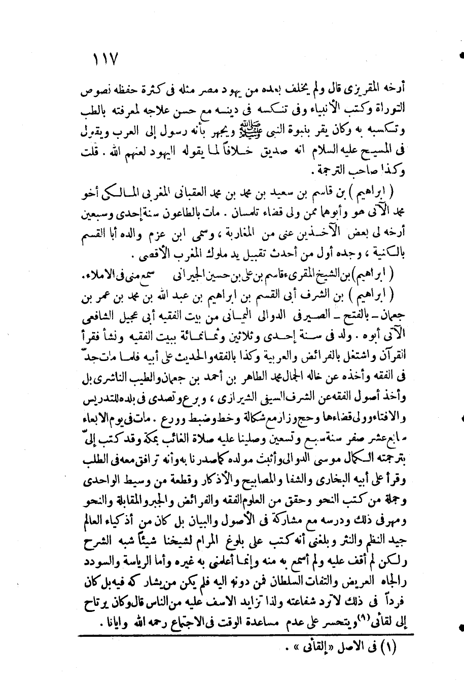 أرخه المقريزي قَالَ وَلم يخلف بعده من يهود مصر مثله فِي كَثْرَة حفظه نُصُوص التَّوْرَاة وَكتب الْأَنْبِيَاء وَفِي تنكسه فِي دينه مَعَ حسن علاجه لمعرفته بالطب وتكسبه بِهِ وَكَانَ يقر بنبوة النَّبِي صلى الله عَلَيْهِ وَسلم ويجهر بِأَنَّهُ رَسُول إِلَى الْعَرَب وَيَقُول فِي الْمَسِيح عَلَيْهِ السَّلَام أَنه صديق خلافًا لما يَقُوله الْيَهُود لعنهم)