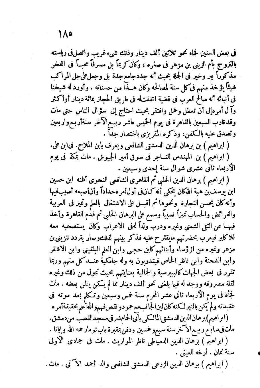 إِبْرَاهِيم برهَان الدّين الدِّمَشْقِي الْمَالِكِي باني الْحمام شَرْقي مَسْجِد الْقصب من دمشق. مَاتَ فِي سَابِع ربيع الآخر سنة سبع وَخمسين وَدفن بمقبرة بَاب توما رَحمَه الله وإيانا.