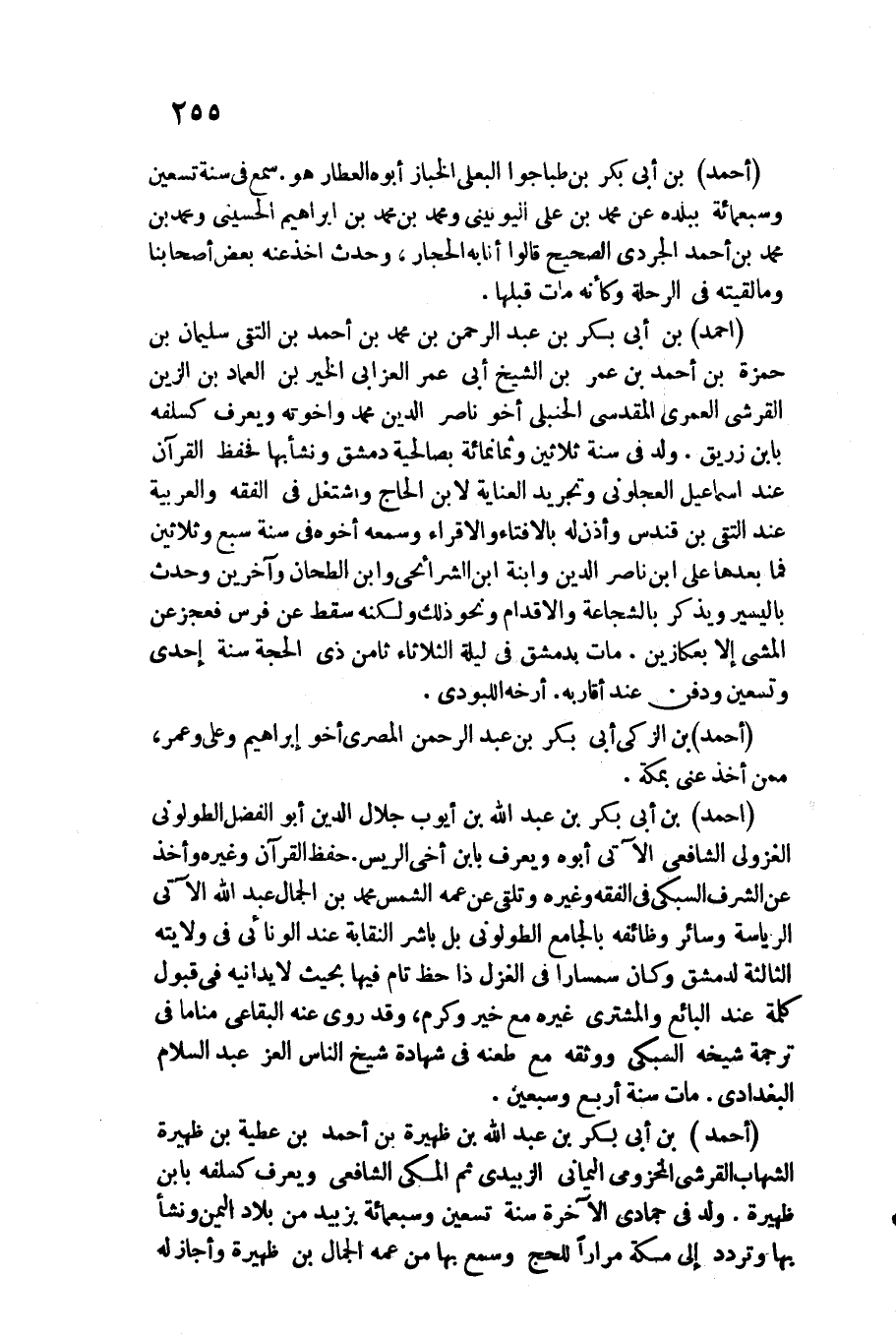 أَحْمد بن أبي بكر بن عبد الله بن أَيُّوب جلال الدّين أَبُو الْفضل الطولوني الغزولي الشَّافِعِي الْآتِي أَبوهُ وَيعرف بِابْن أخي الريس. / حفظ الْقُرْآن وَغَيره وَأخذ عَن الشّرف السُّبْكِيّ فِي الْفِقْه وَغَيره وتلقى عَن عَمه الشَّمْس مُحَمَّد بن الْجمال عبد الله الْآتِي الرياسة وَسَائِر وظائفه بالجامع الطولوني بل بَاشر النقابة عِنْد الونائي فِي ولَايَته الثَّالِثَة لدمشق وَكَانَ سمسارا فِي الْغَزل ذَا حَظّ تَامّ فِيهَا بِحَيْثُ لَا يدانيه فِي قبُول كلمة عِنْد البَائِع والمشرتي غَيره مَعَ خير وكرم، وَقد روى عَنهُ البقاعي مناما فِي تَرْجَمَة شَيْخه السُّبْكِيّ وَوَثَّقَهُ مَعَ طعنه فِي شَهَادَة شيخ النَّاس الْعِزّ عبد السَّلَام الْبَغْدَادِيّ. مَاتَ سنة أَربع وَسبعين.