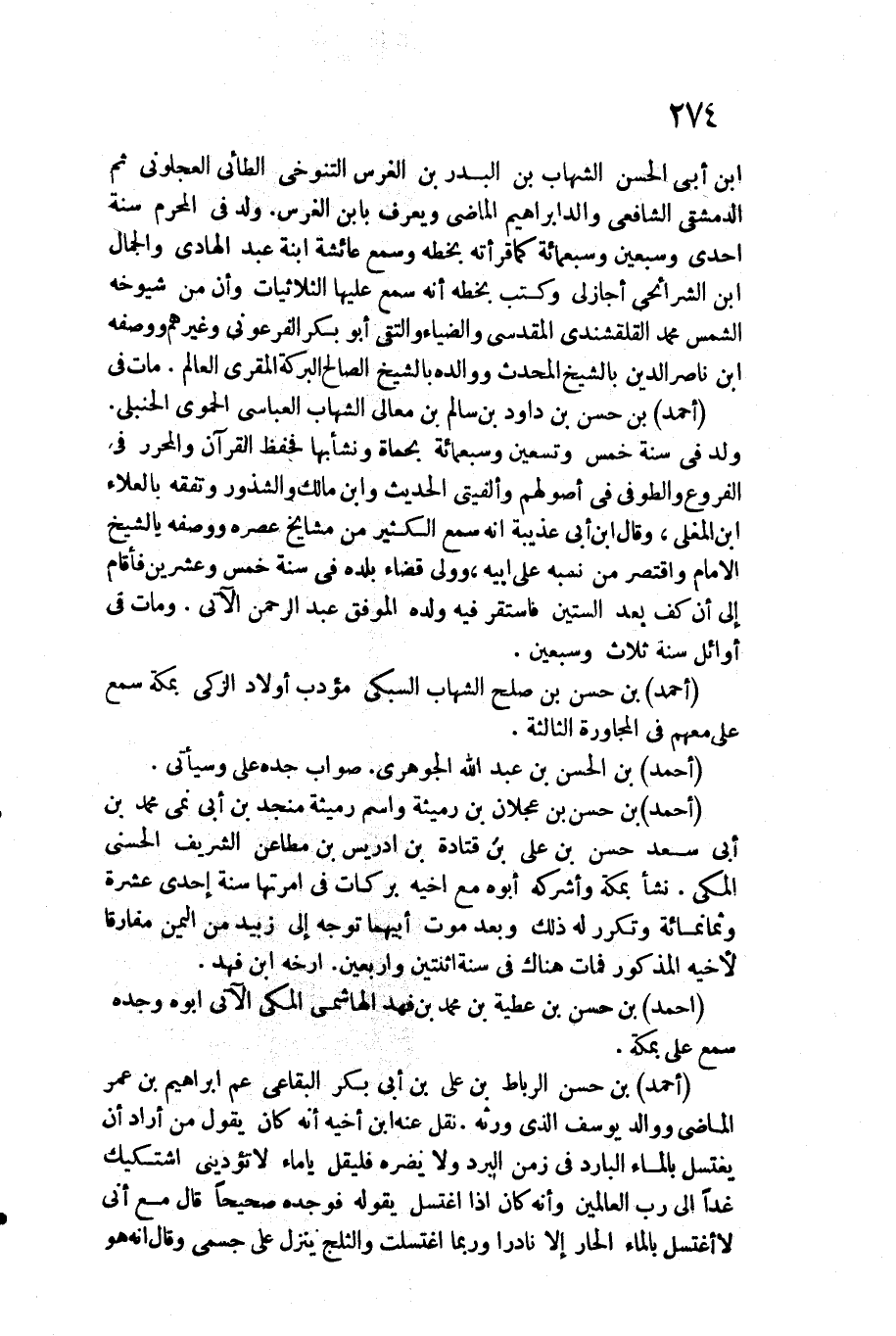 أَحْمد بن حسن الرِّبَاط بن عَليّ بن أبي بكر البقاعي عَم إِبْرَاهِيم بن عمر الْمَاضِي ووالد يُوسُف الَّذِي وَرثهُ. / نقل عَنهُ ابْن أَخِيه أَنه كَانَ يَقُول من أَرَادَ أَن يغْتَسل بِالْمَاءِ الْبَارِد فِي زمن الْبرد وَلَا يضرّهُ فَلْيقل يَا مَاء لَا تؤذيني أشتكيك غَدا إِلَى رب الْعَالمين وَأَنه كَانَ إِذا اغْتسل يَقُوله فَوَجَدَهُ صَحِيحا قَالَ مَعَ أَنِّي لَا أَغْتَسِل بِالْمَاءِ الْحَار إِلَّا نَادرا وَرُبمَا اغْتَسَلت والثلج ينزل على جسمي وَقَالَ أَنه هُوَ