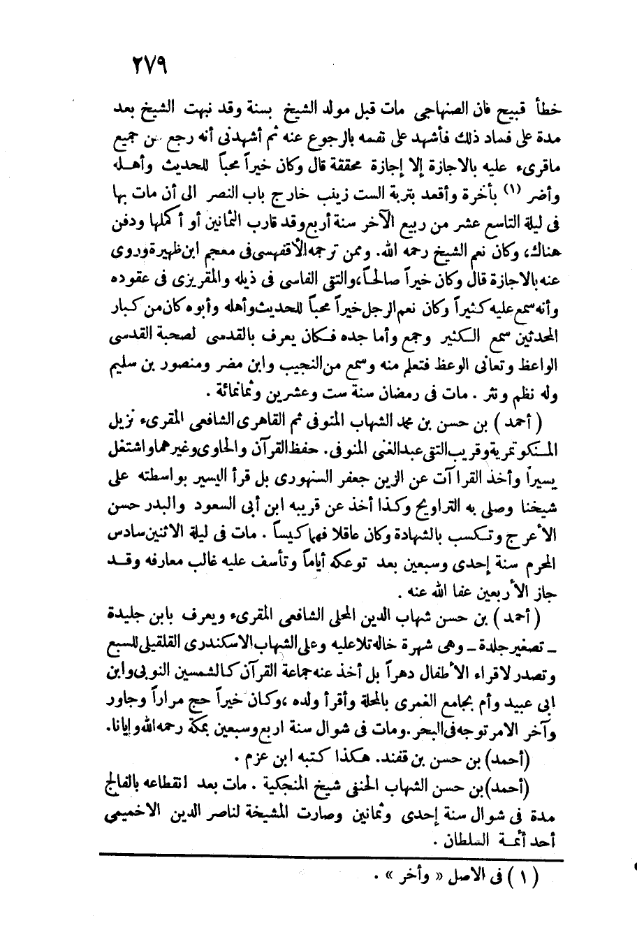 أَحْمد بن حسن الشهَاب الْحَنَفِيّ شيخ المنجكية. / مَاتَ بعد انْقِطَاعه بالفالج مُدَّة فِي شَوَّال سنة إِحْدَى وَثَمَانِينَ وَصَارَت المشيخة لناصر الدّين الأخميمي أحد أَئِمَّة السُّلْطَان.