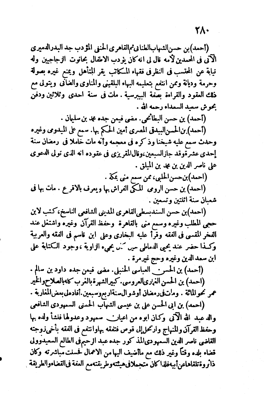 أَحْمد بن حسن الشهَاب الطنابي ثمَّ القاهري الْحَنَفِيّ الْمُؤَدب جد الْبَدْر الدَّمِيرِيّ الْآتِي فِي المحمدين لأمه / قَالَ لي أَنه كَانَ يُؤَدب الْأَطْفَال بحانوت الزجاجيين وَله نِيَابَة عَن الْمُحْتَسب فِي النّظر فِي فُقَهَاء الْمكَاتب يقر المتأهل وَيمْنَع غَيره بصولة وَحُرْمَة وديانة وَمِمَّنْ انْتفع بتعليمه الْبَهَاء البُلْقِينِيّ والمناوي والضاني ويتولى مَعَ ذَلِك الْعُقُود وَالْقِرَاءَة بِصفة البيبرسية. مَاتَ فِي سنة إِحْدَى وَثَلَاثِينَ وَدفن بحوش سعيد السُّعَدَاء رَحمَه الله.