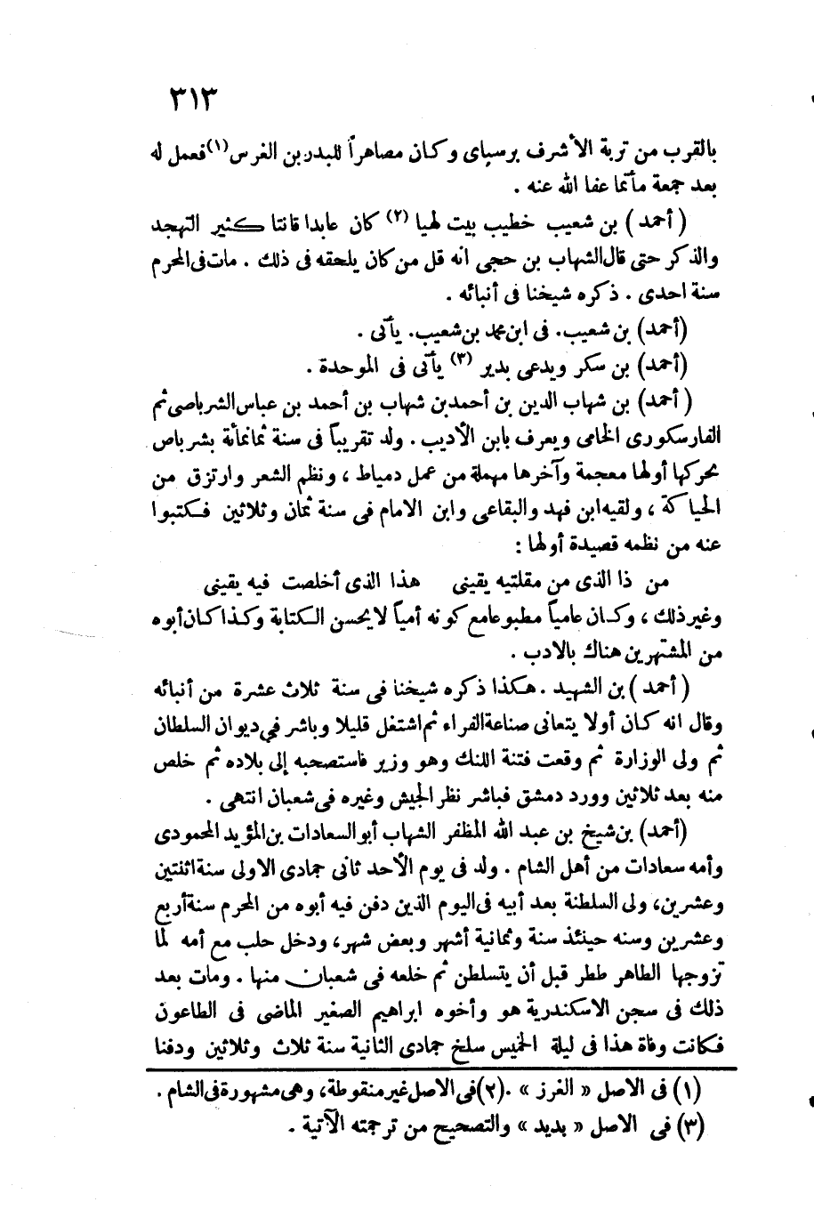 أَحْمد بن الشَّهِيد. / هَكَذَا ذكره شَيخنَا فِي سنة ثَلَاث عشرَة من أنبائه وَقَالَ أَنه كَانَ أَولا يتعانى صناعَة الْفراء ثمَّ اشْتغل قَلِيلا وباشر فِي ديوَان السُّلْطَان ثمَّ ولي الوزارة ثمَّ وَقعت فتْنَة اللنك وَهُوَ وَزِير فاستصحبه إِلَى بِلَاده ثمَّ خلص مِنْهُ بعد ثَلَاثِينَ وَورد دمشق فباشر نظر الْجَيْش وَغَيره فِي شعْبَان انْتهى.