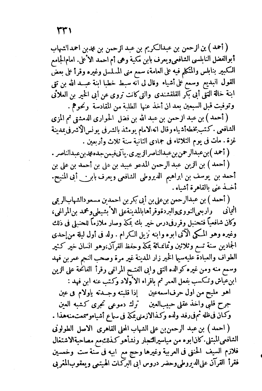 أَحْمد بن عبد الرَّحْمَن بن عَليّ الشهَاب الْمحلى القاهري الأَصْل الطولوني الشَّافِعِي المبتلي. /