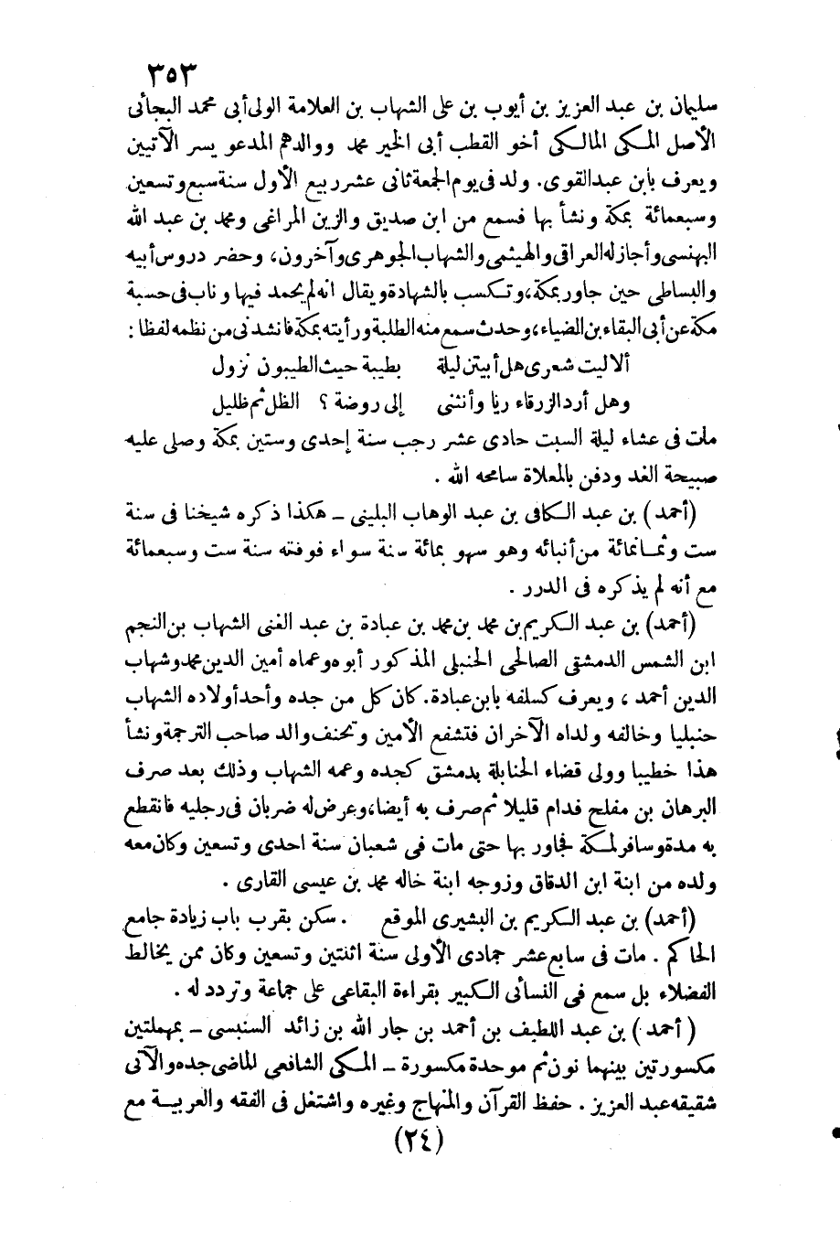 أَحْمد بن عبد اللَّطِيف بن أَحْمد بن جَار الله بن زَائِد السنبسي بمهملتين مكسورتين بَينهمَا نون ثمَّ مُوَحدَة مَكْسُورَة الْمَكِّيّ الشَّافِعِي الْمَاضِي جده والآتي شقيقه عبد الْعَزِيز. / حفظ الْقُرْآن والمنهاج وَغَيره واشتغل فِي الْفِقْه والعربية مَعَ