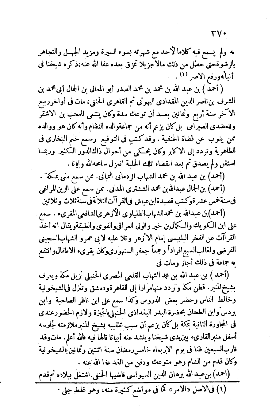 بِهِ وَلم يسمع فِيهِ كلَاما لأحد مَعَ شهرته بِسوء السِّيرَة ومزيد الْجَهْل والتجاهر بالرشوة حَتَّى حصل من ذَلِك مَالا جزيلا تمزق بعده عَفا الله عَنهُ، ذكره شَيخنَا فِي أنبائه وَرفع الأصر.)