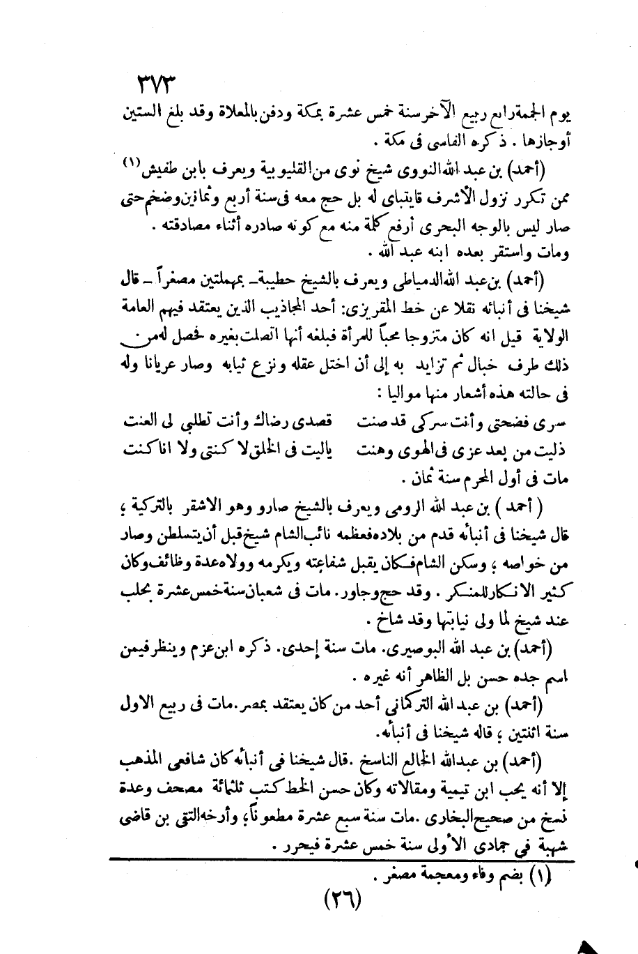 أَحْمد بن عبد الله النَّوَوِيّ شيخ نوى من القليوبية وَيعرف بِابْن طفيش / مِمَّن تكَرر نزُول الْأَشْرَف قايتباي لَهُ بل حج مَعَه فِي سنة أَربع وَثَمَانِينَ وضخم حَتَّى صَار لَيْسَ بِالْوَجْهِ البحري أرفع كلمة مِنْهُ مَعَ كَونه صادره أثْنَاء مصادقته. وَمَات وَاسْتقر بعده ابْنه عبد الله.